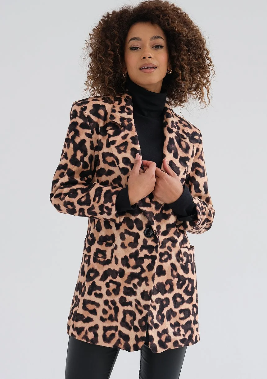 Zura - Beige leopard printed oversize blazer
