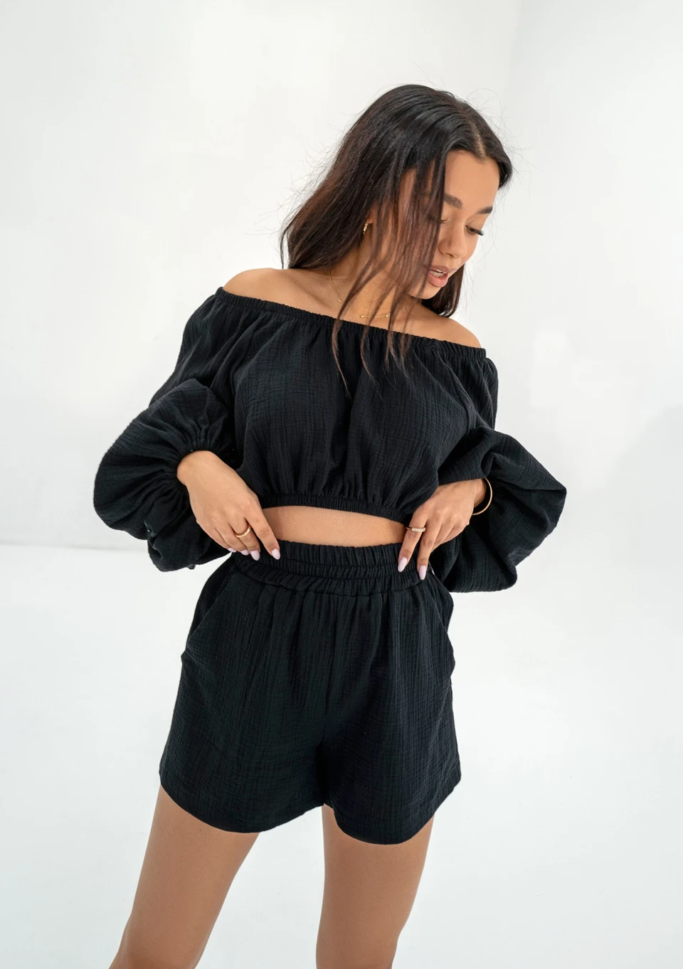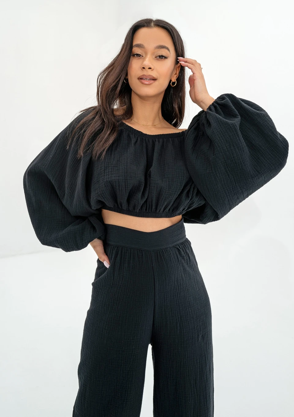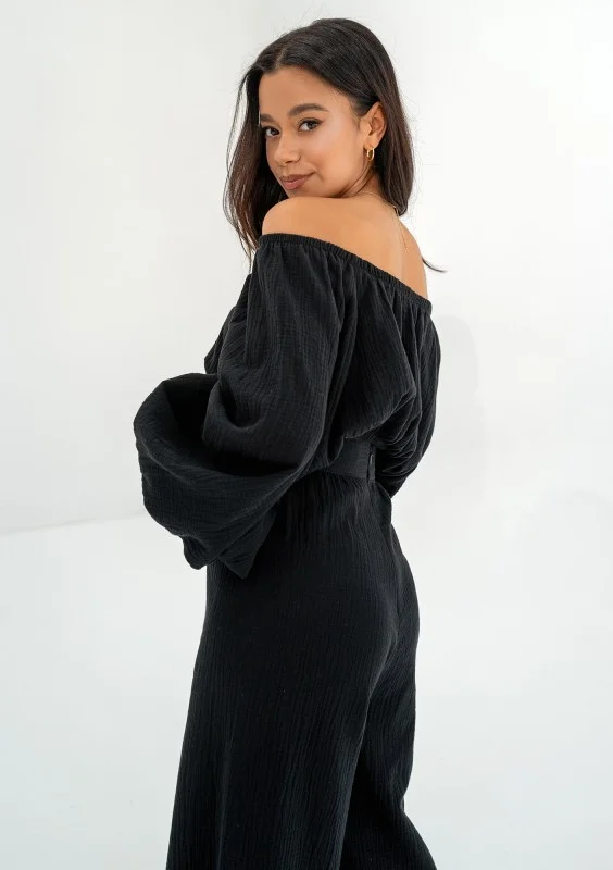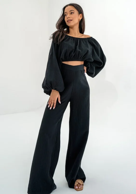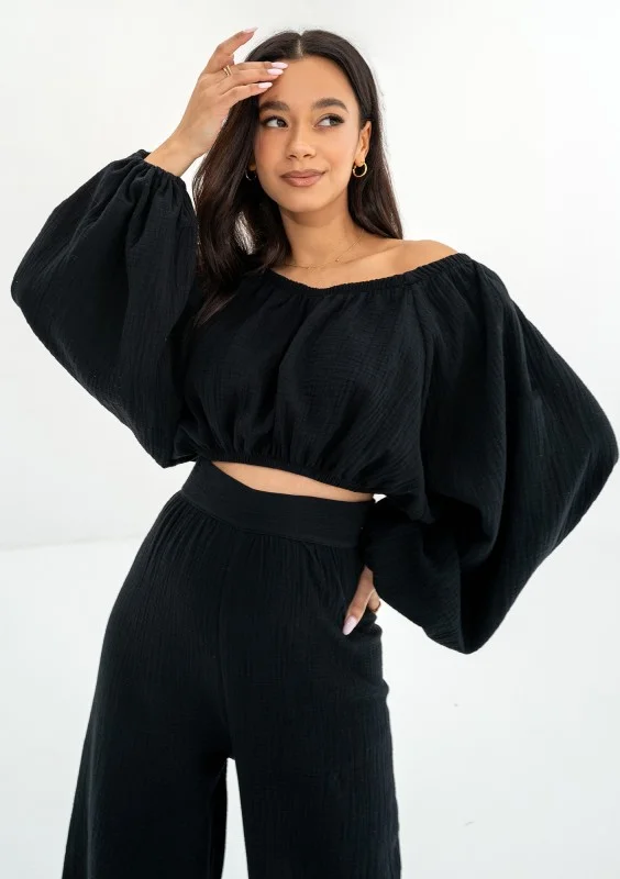 Bari - Black muslin Spanish crop top