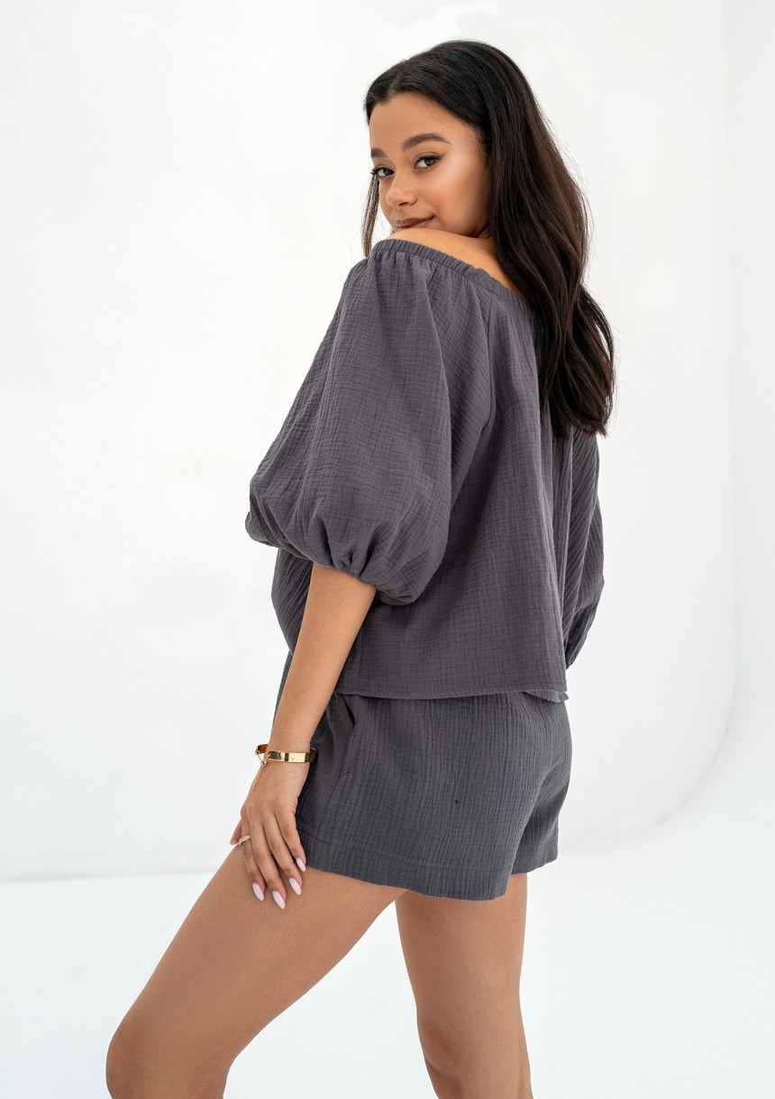 Boco - Dark grey muslin oversize top