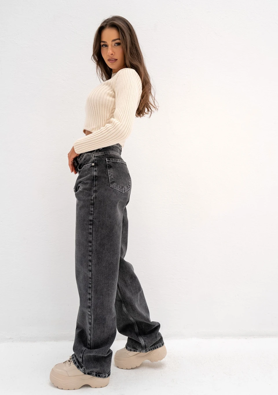 Jesse - Loose black polo neck sweater