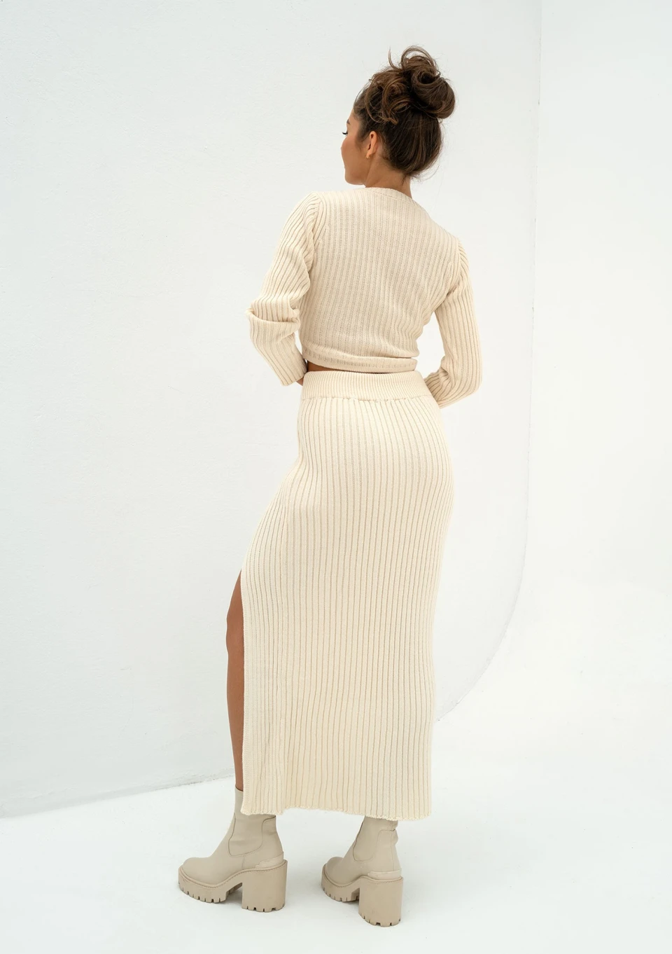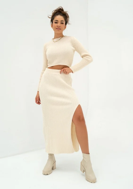 Kirry - Short beige knitted blouse
