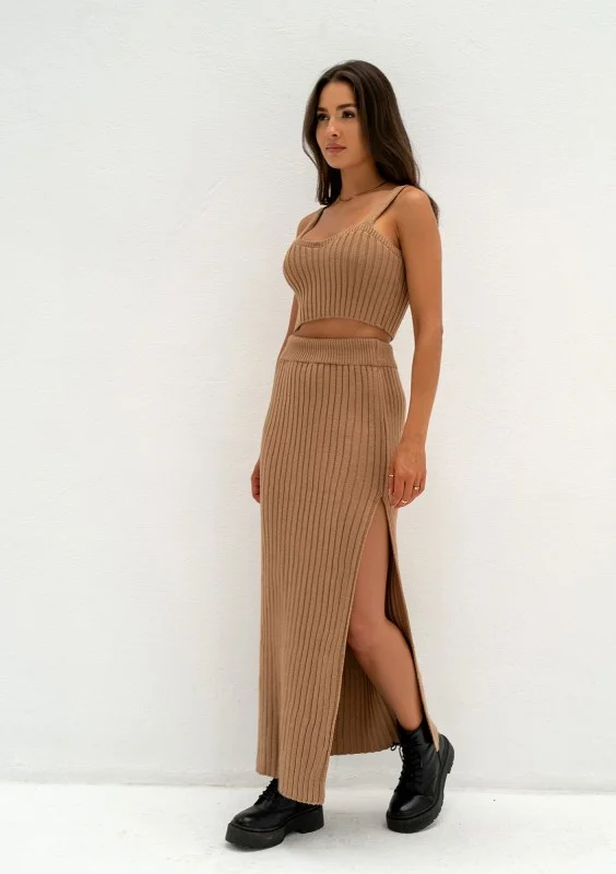 Celine - Camel brown knitted maxi skirt