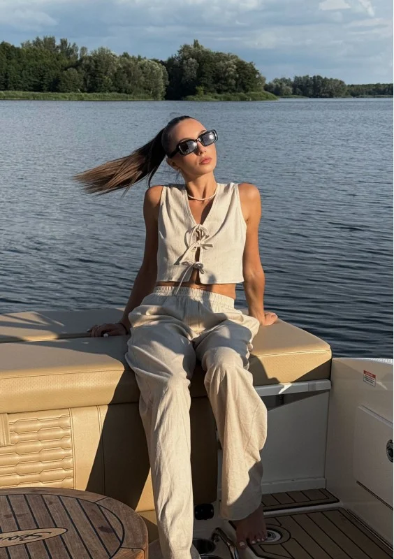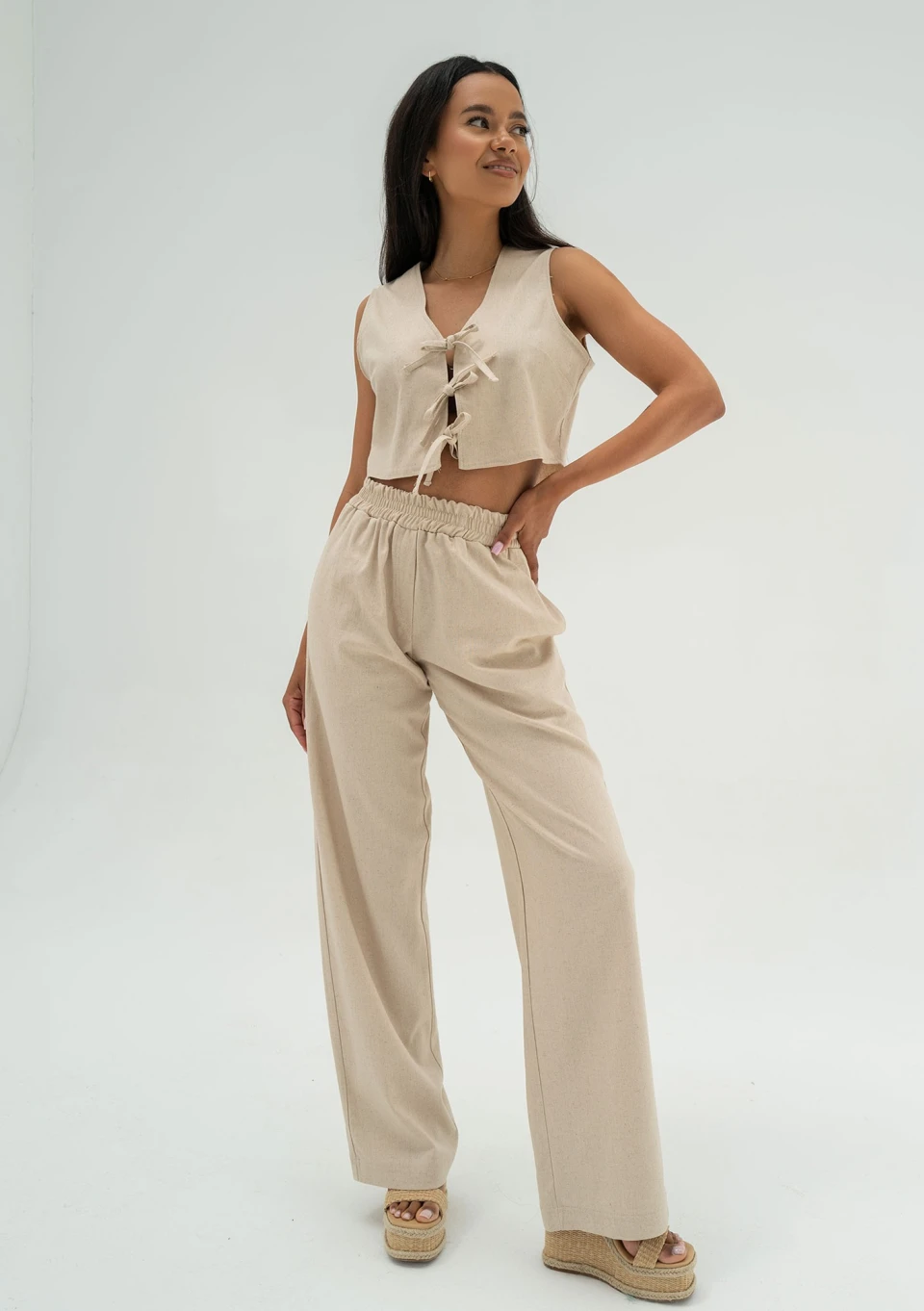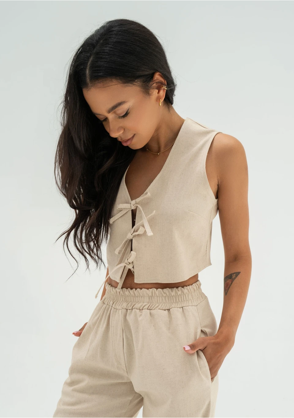 Capri - Beige muslin wrap shirt