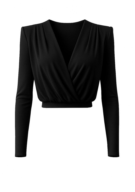 Criss - Black wrap top with elegant shoulder pads