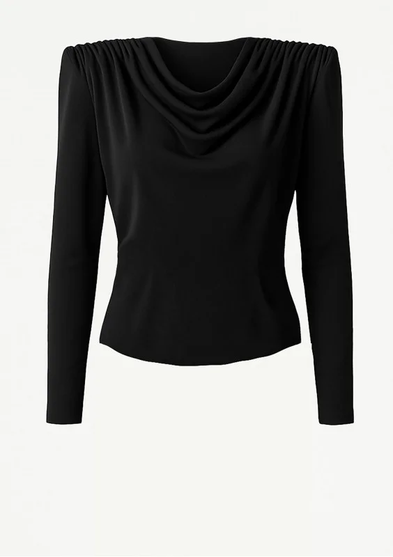 Carlita - Black asymmetric dress with a draped neck