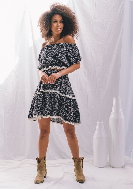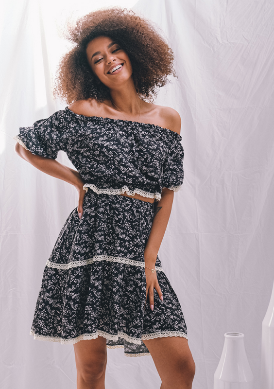 Black viscose blouse with lace details