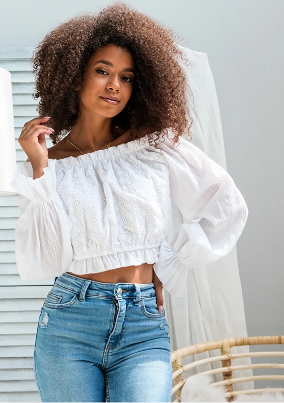 Celine - Short ecru knitted top