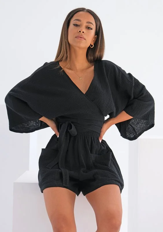 Blanche - Black muslin midi wrap dress