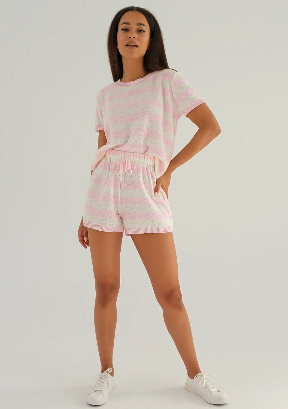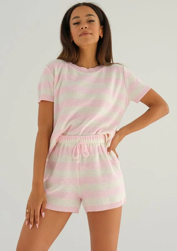 Kiko - Knitted pink striped shorts