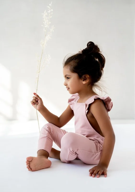 Powder pink frilly suspender dungaress