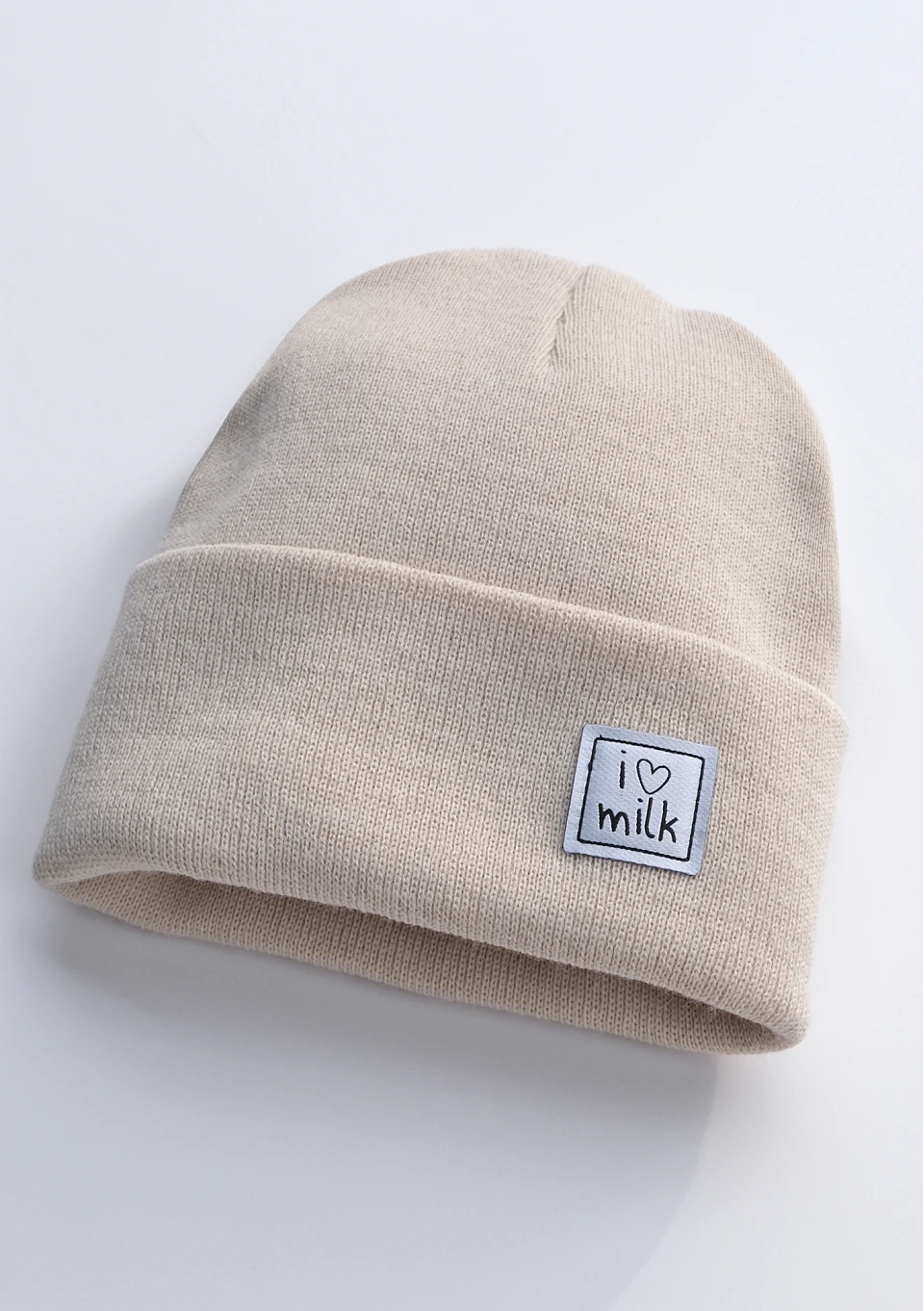 Beige plush beanie with teddy ears