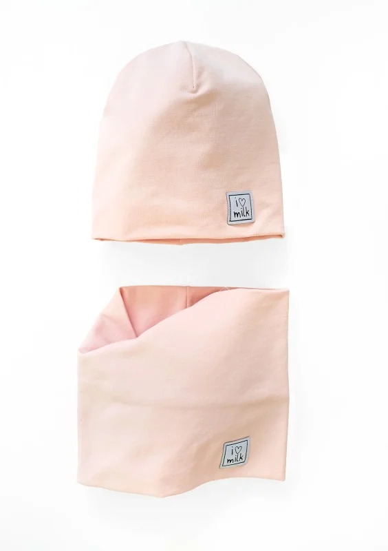 Powder pink cotton beanie and snood set