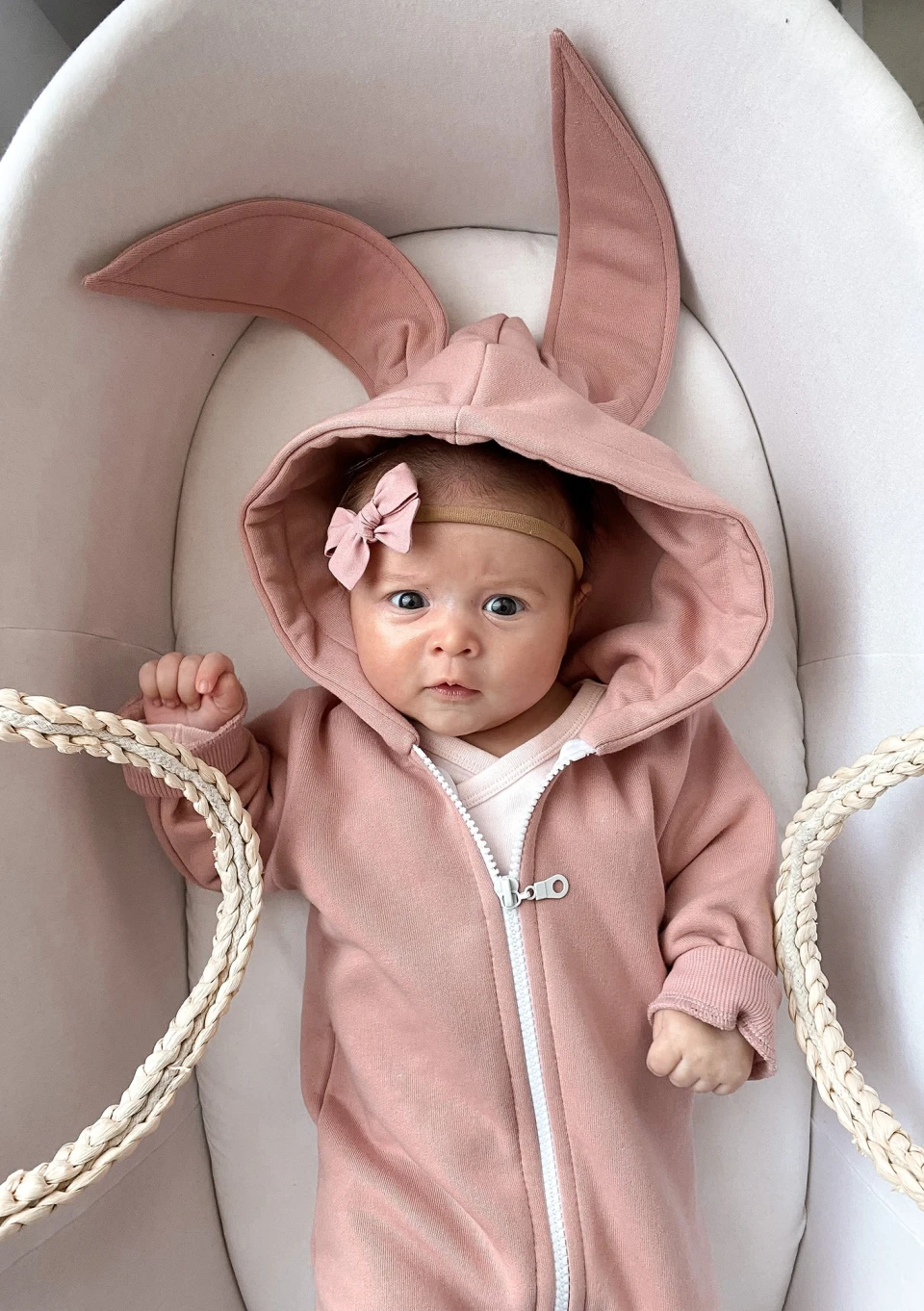 Powder pink long sleeved romper "bez mamy ani rusz"