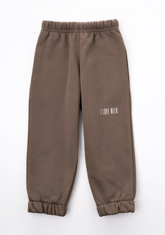 Light blue kids trousers with a milk print
