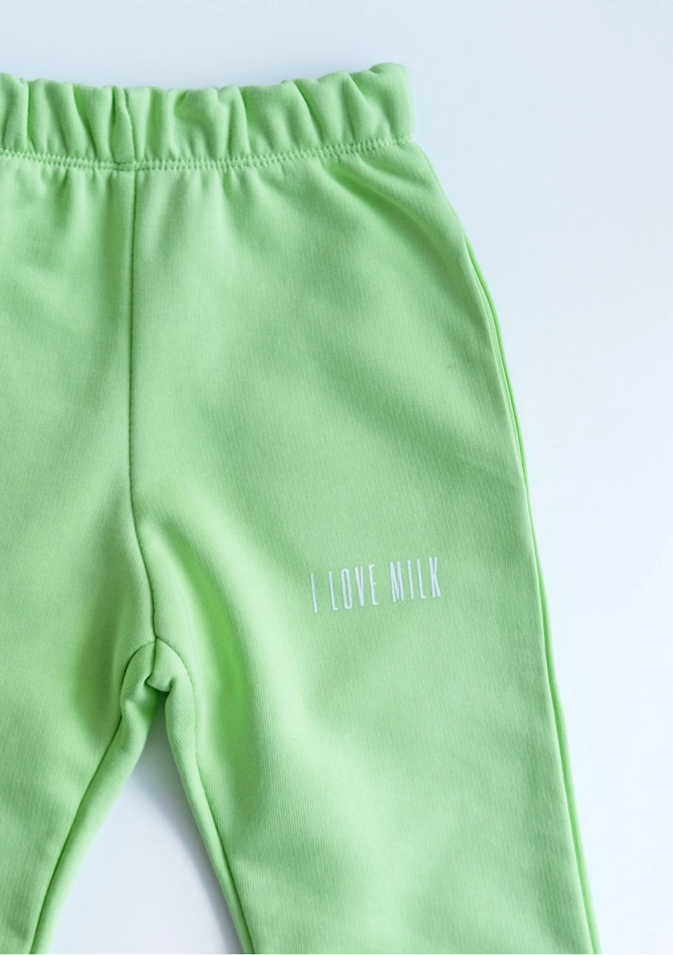 Light blue kids trousers with a milk print