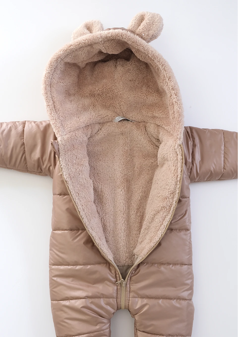 Beige winter onesie with teddy ears