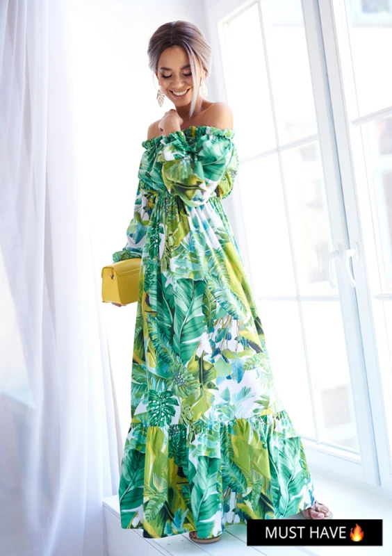 Layla - Maxi dress with a banana leaves print