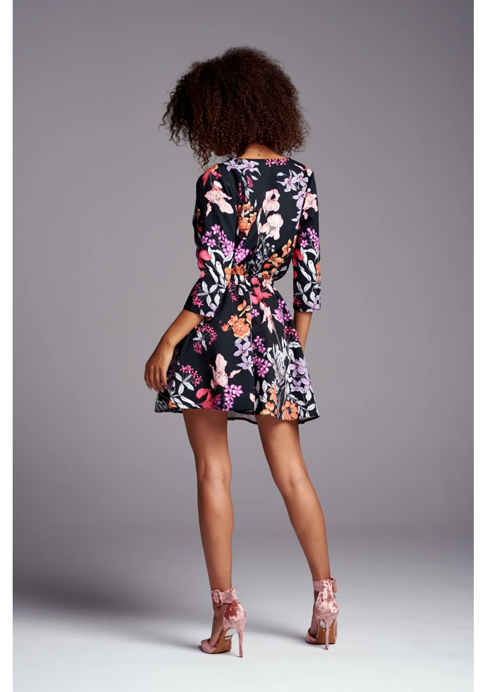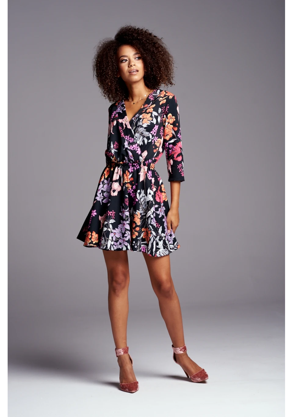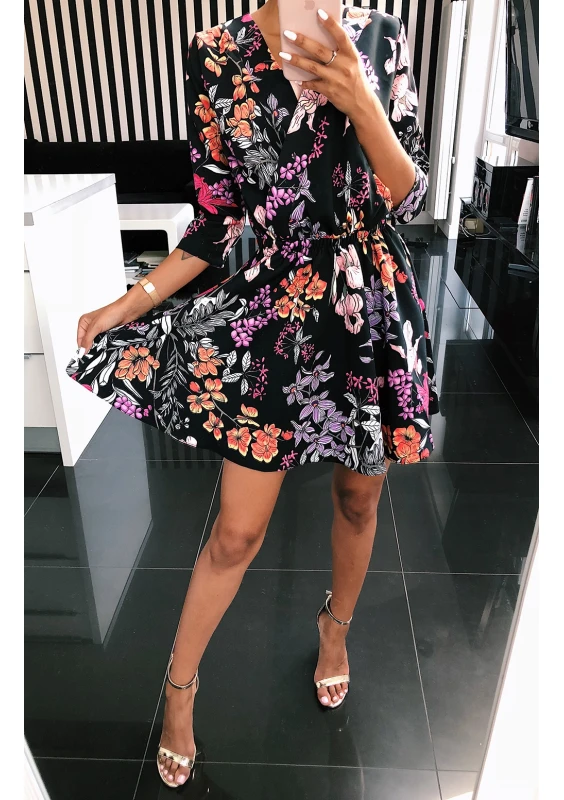 CROSSOVER SKATER DRESS IN FLOWERS PRINT
