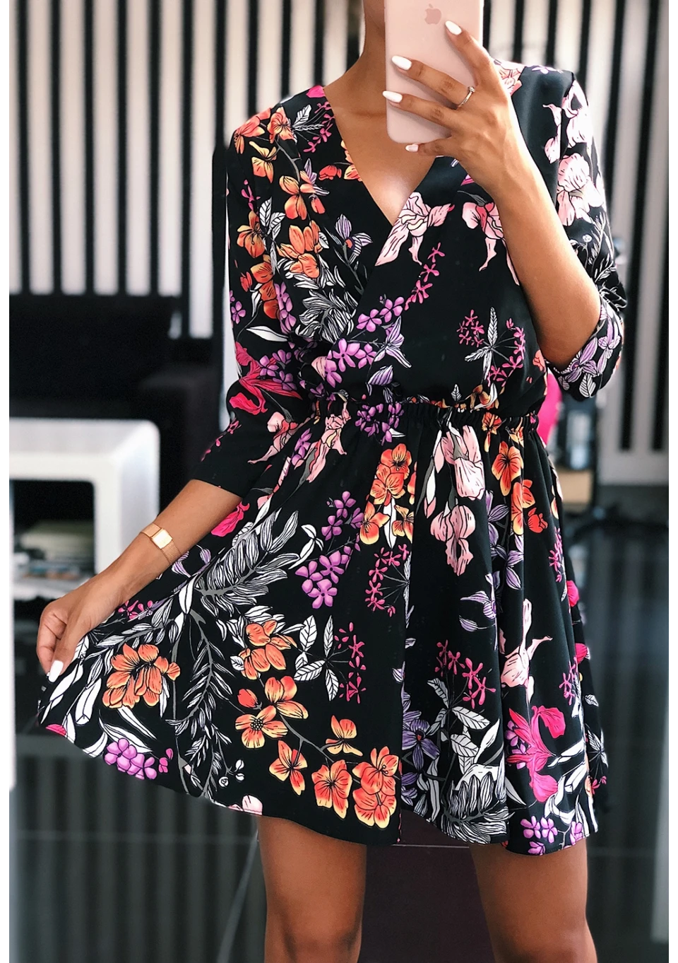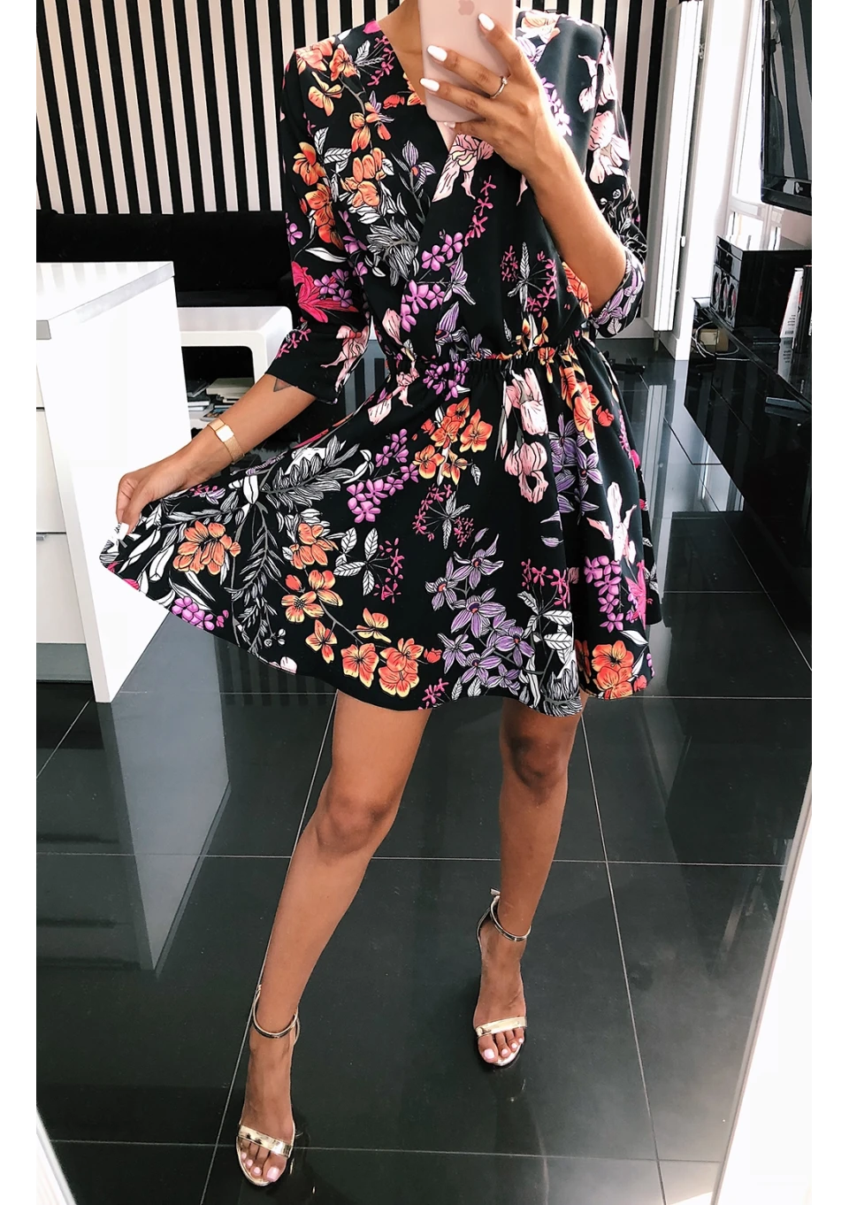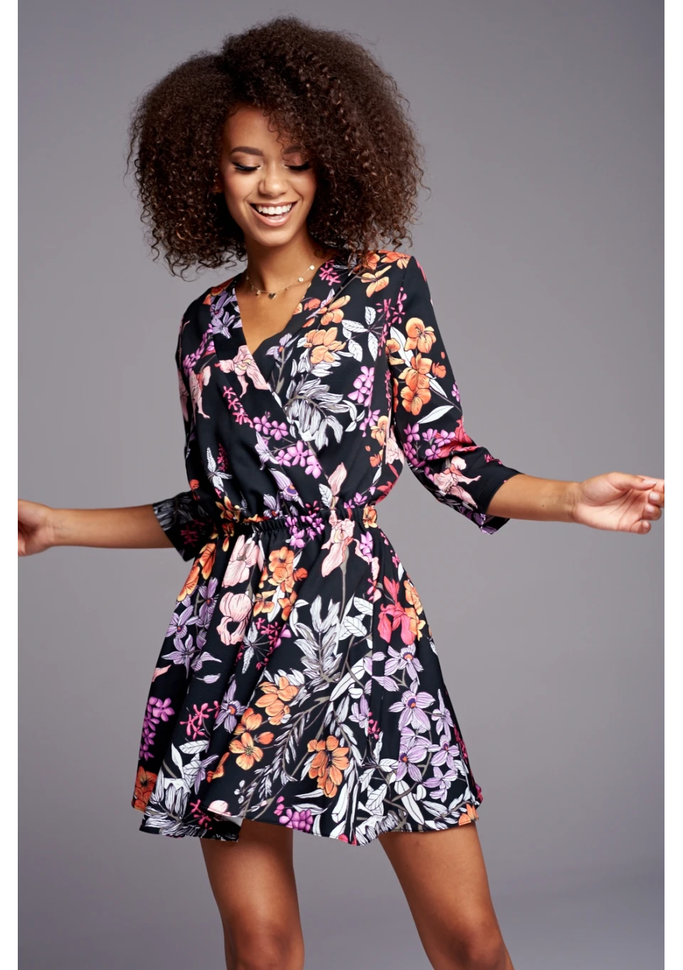 CROSSOVER SKATER DRESS IN FLOWERS PRINT
