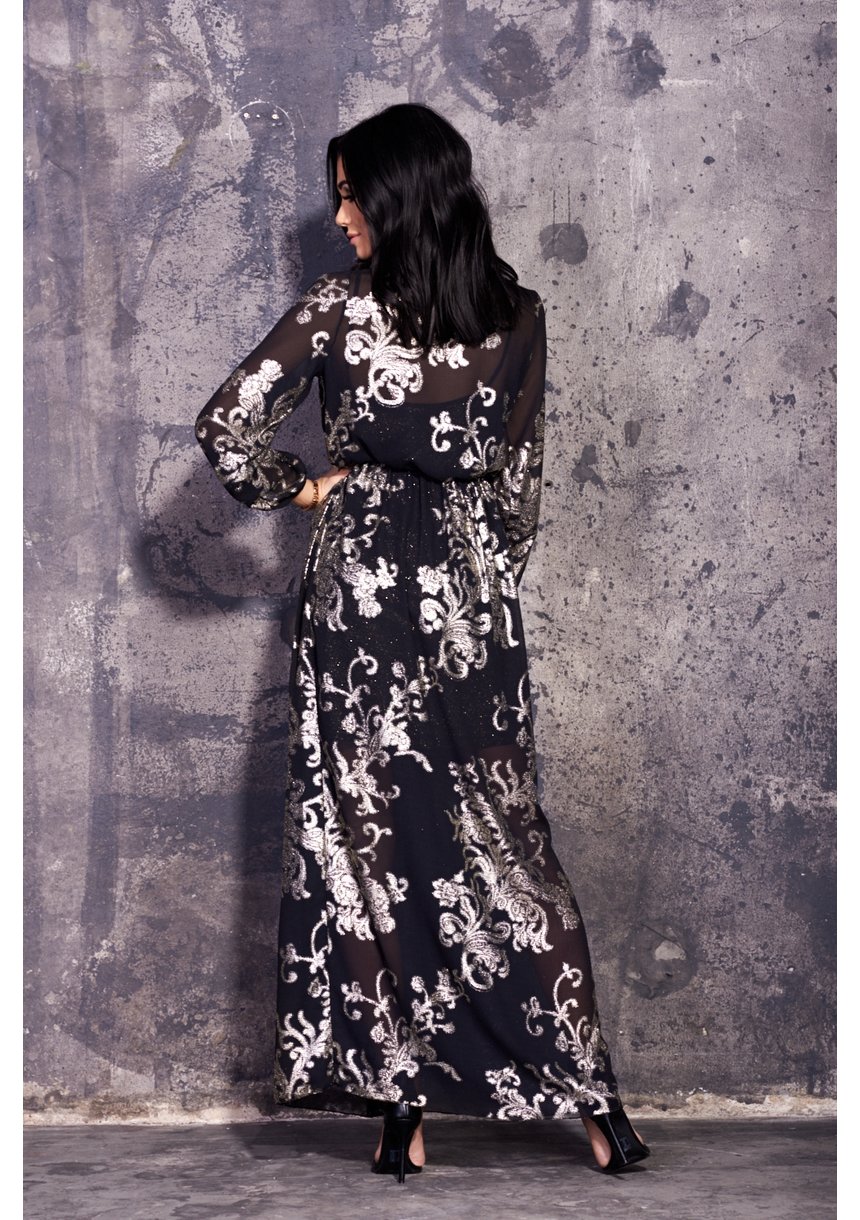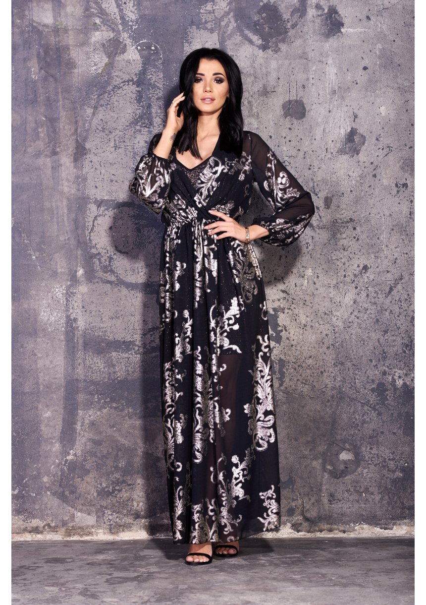MAXI GOLD PRINT CHIFFON DRESS