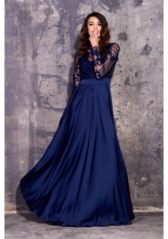 SATIN MAXI DRESS WITH GUIPURE TOP