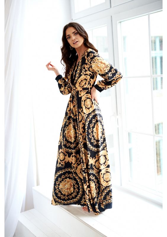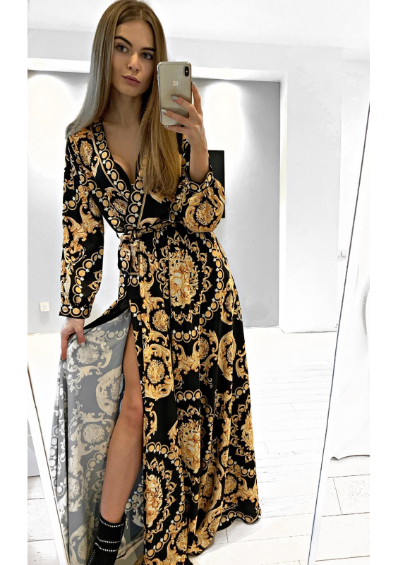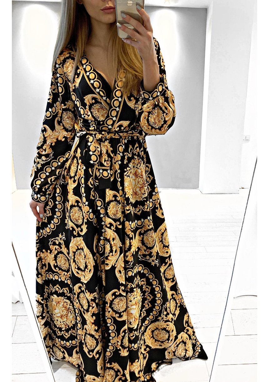 MAXI DRESS IN GOLD ORNAMENT PRINT