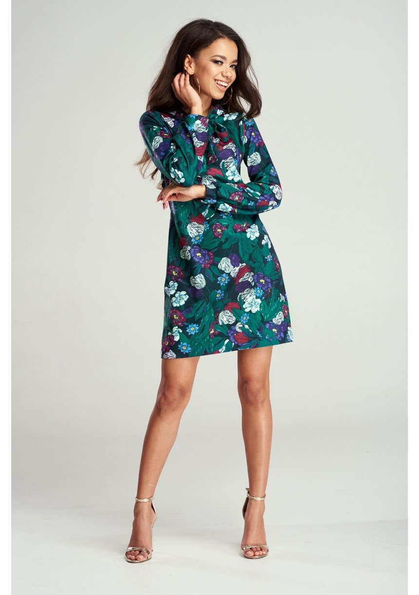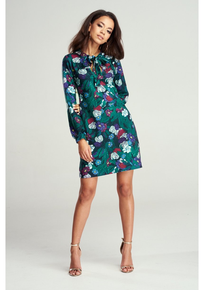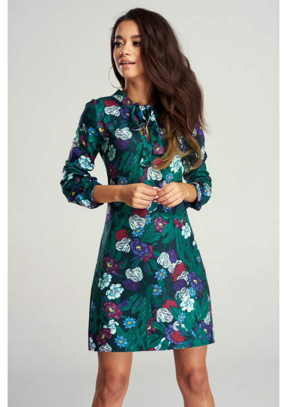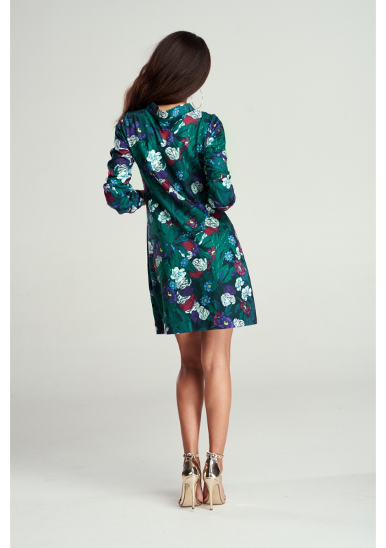 SHIFT GREEN DRESS IN FLOWERS PRINT