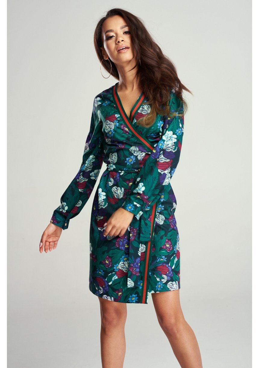 WRAP GREEN DRESS IN FLOWERS PRINT