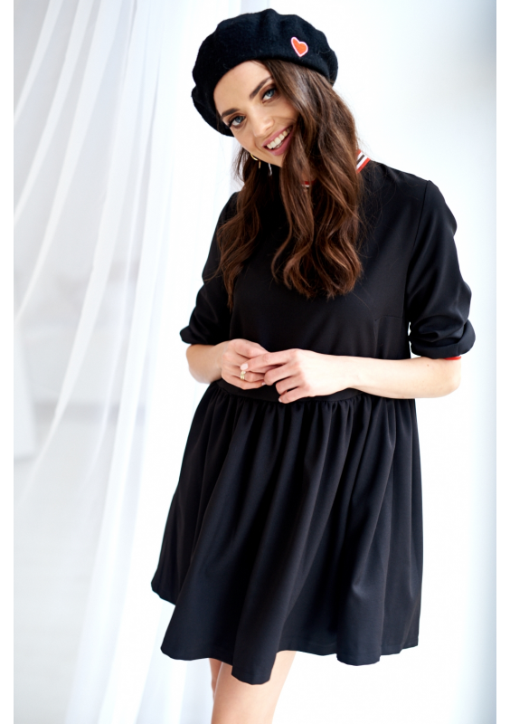 Carlita - Black asymmetric dress with a draped neck