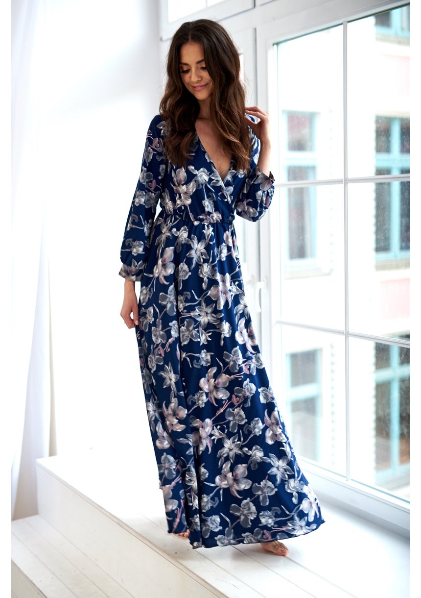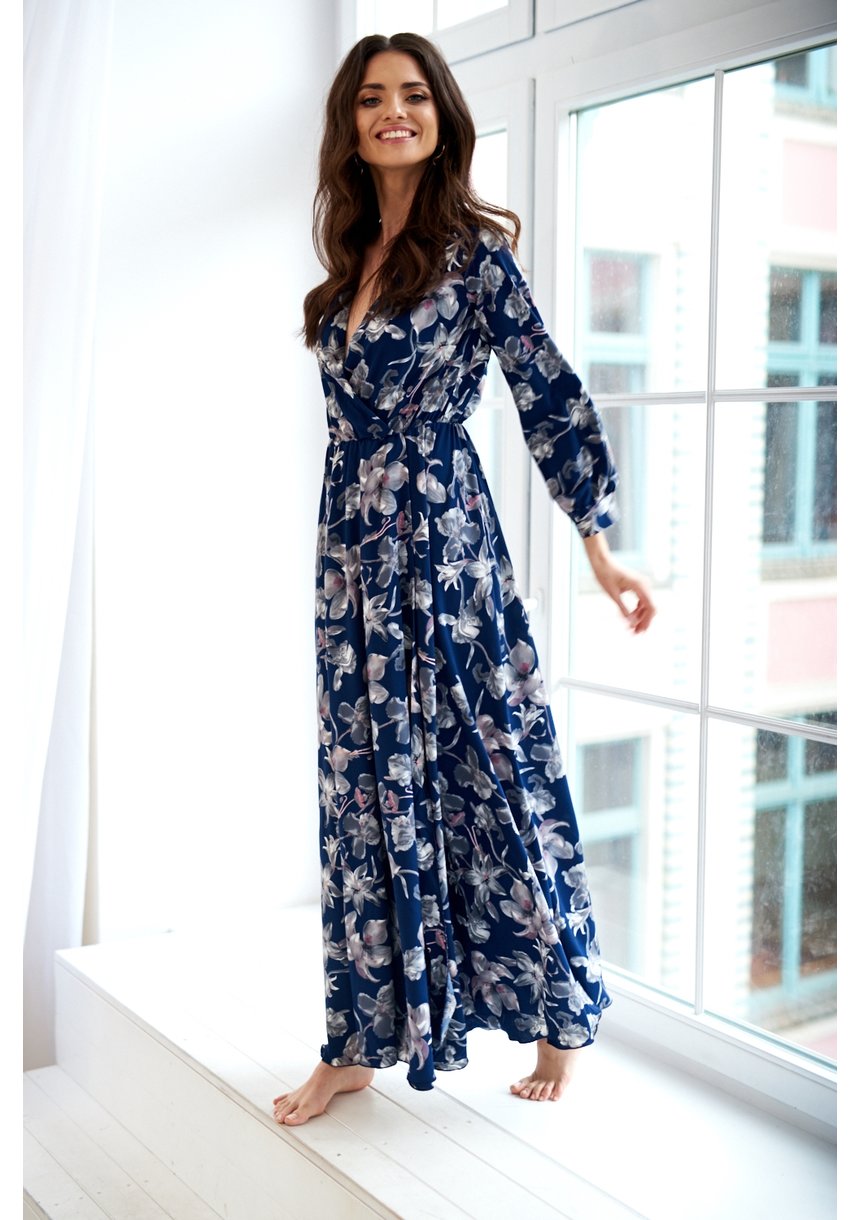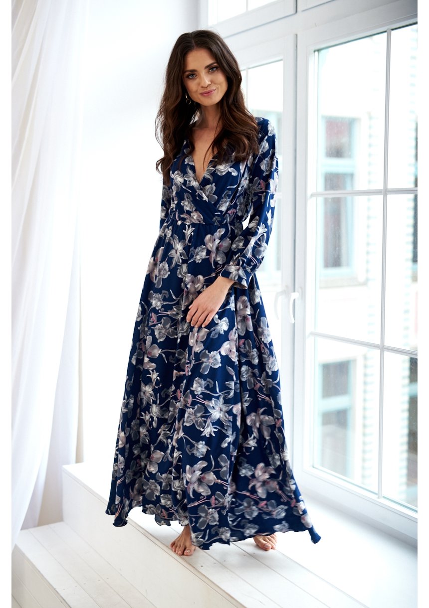 MAXI DRESS IN NAVY FLOWERS PRINT
