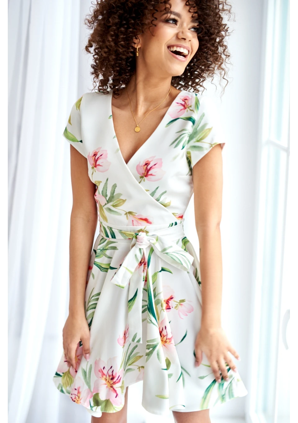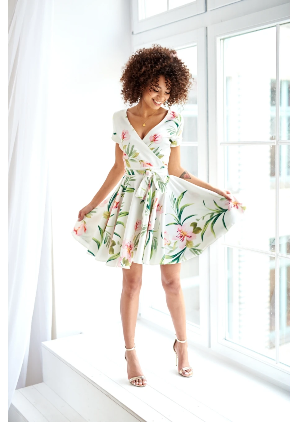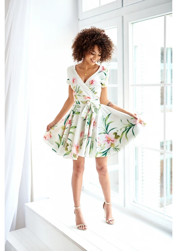 Lilli - Beige floral mini flared dress