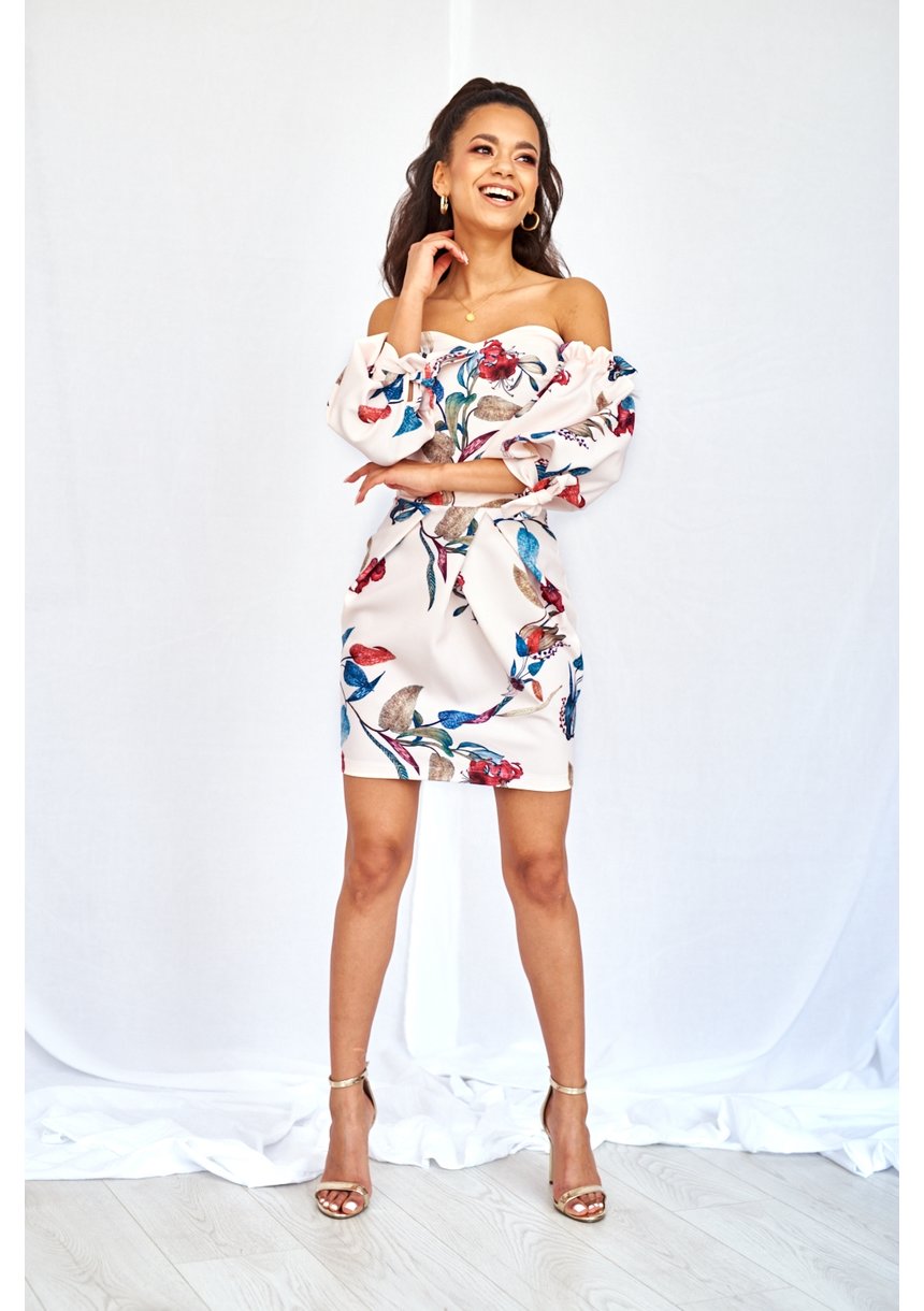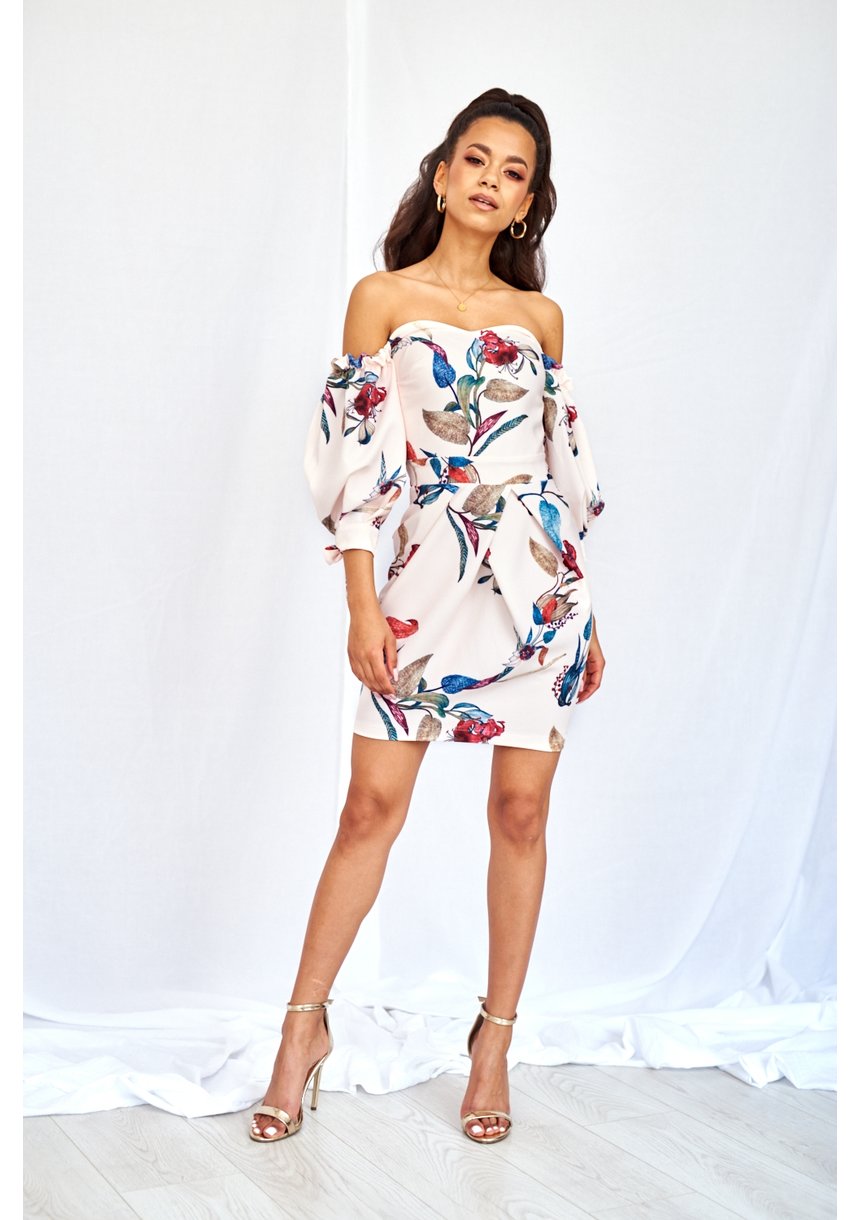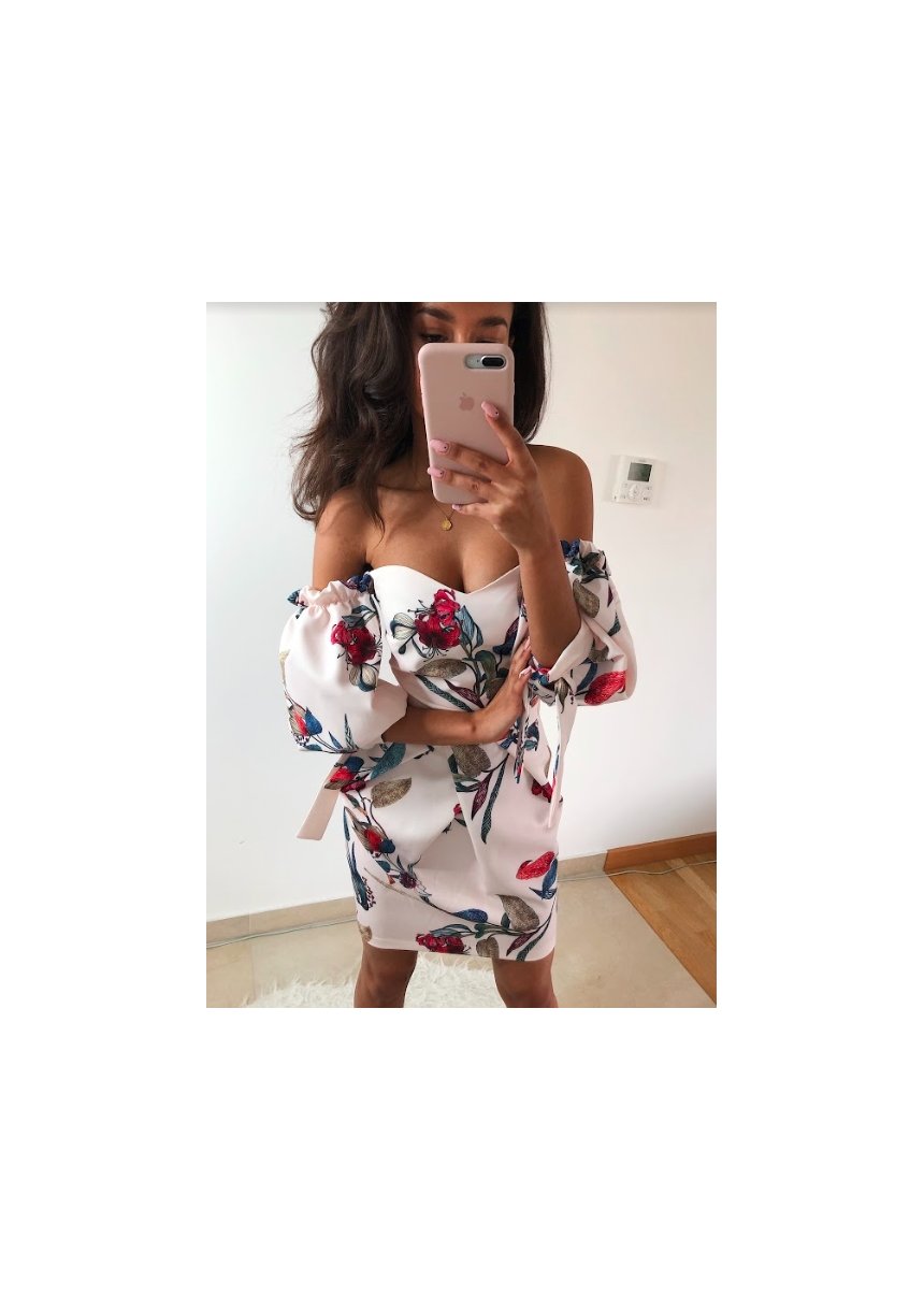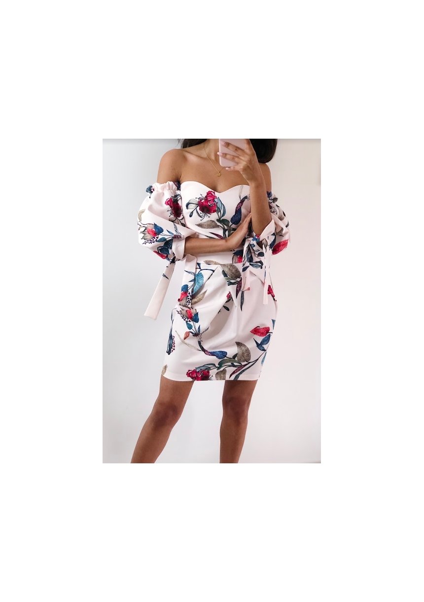 OFF SHOULDERS FLOWERS PRINT DRESS WITH BELL SLEEVES