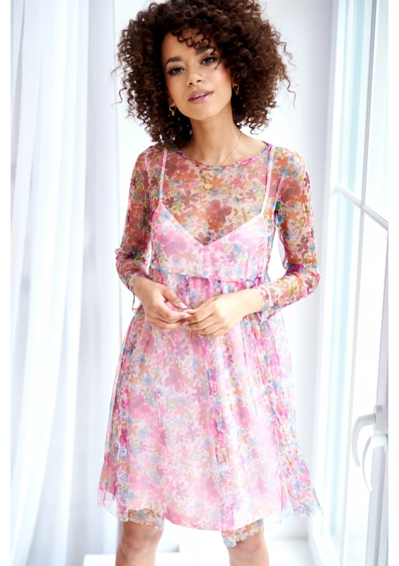 WHITE TULLE DRESS IN FLOWERS PRINT