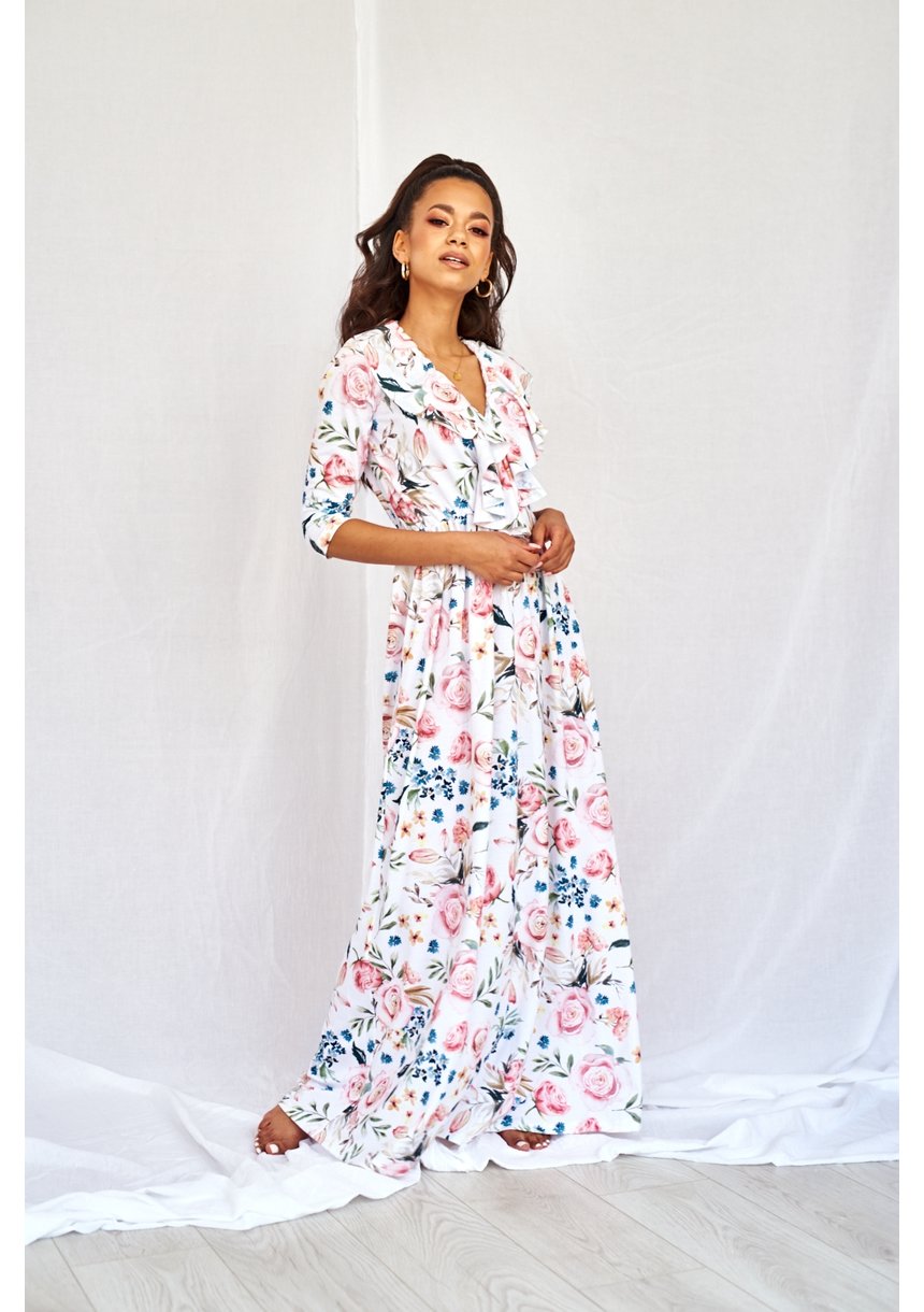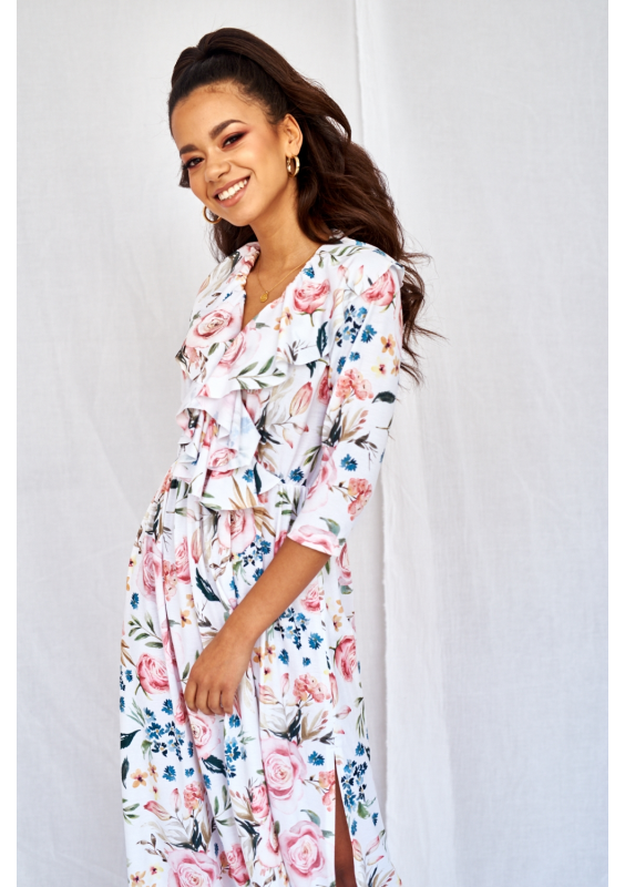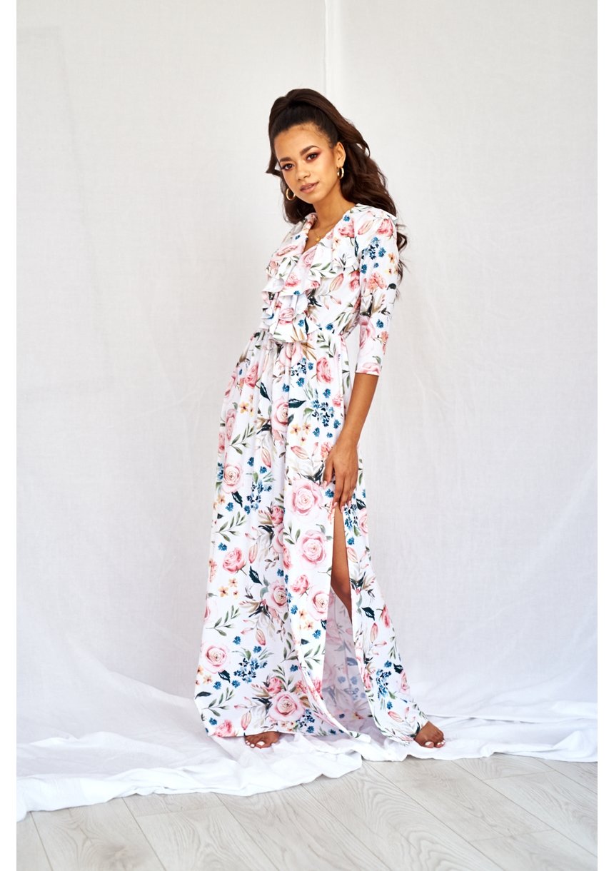 MAXI DRESS WITH FRILLS IN FLOWERS PRINT