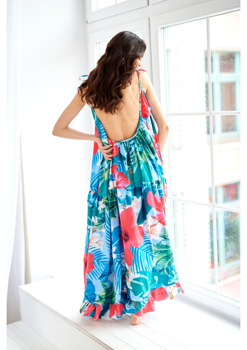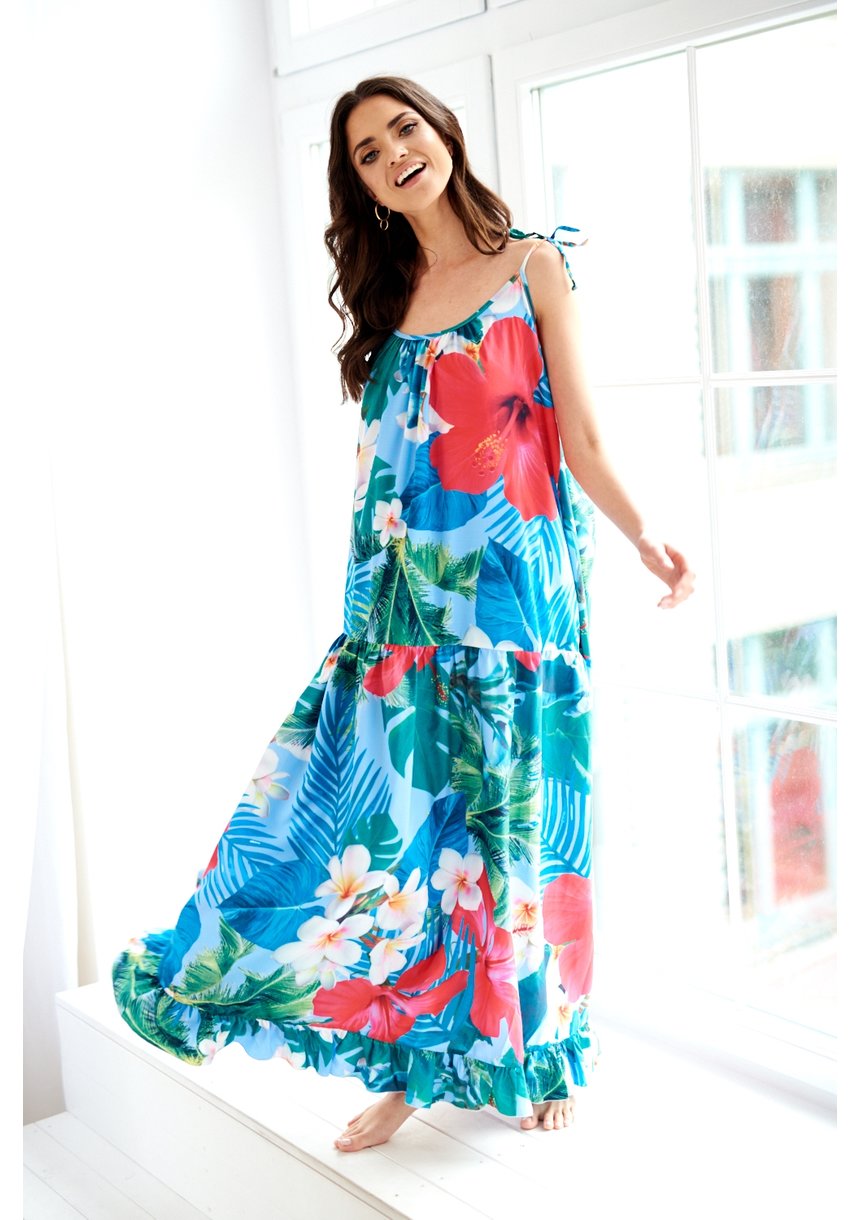 LOOSE MAXI DRESS IN ALOHA FLOWERS PRINT