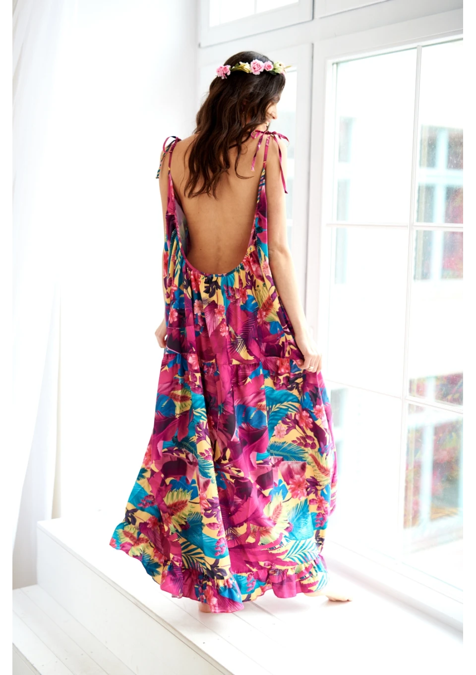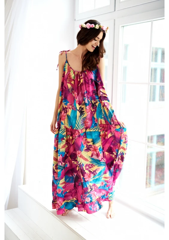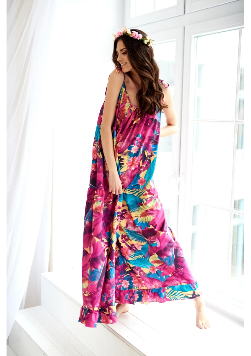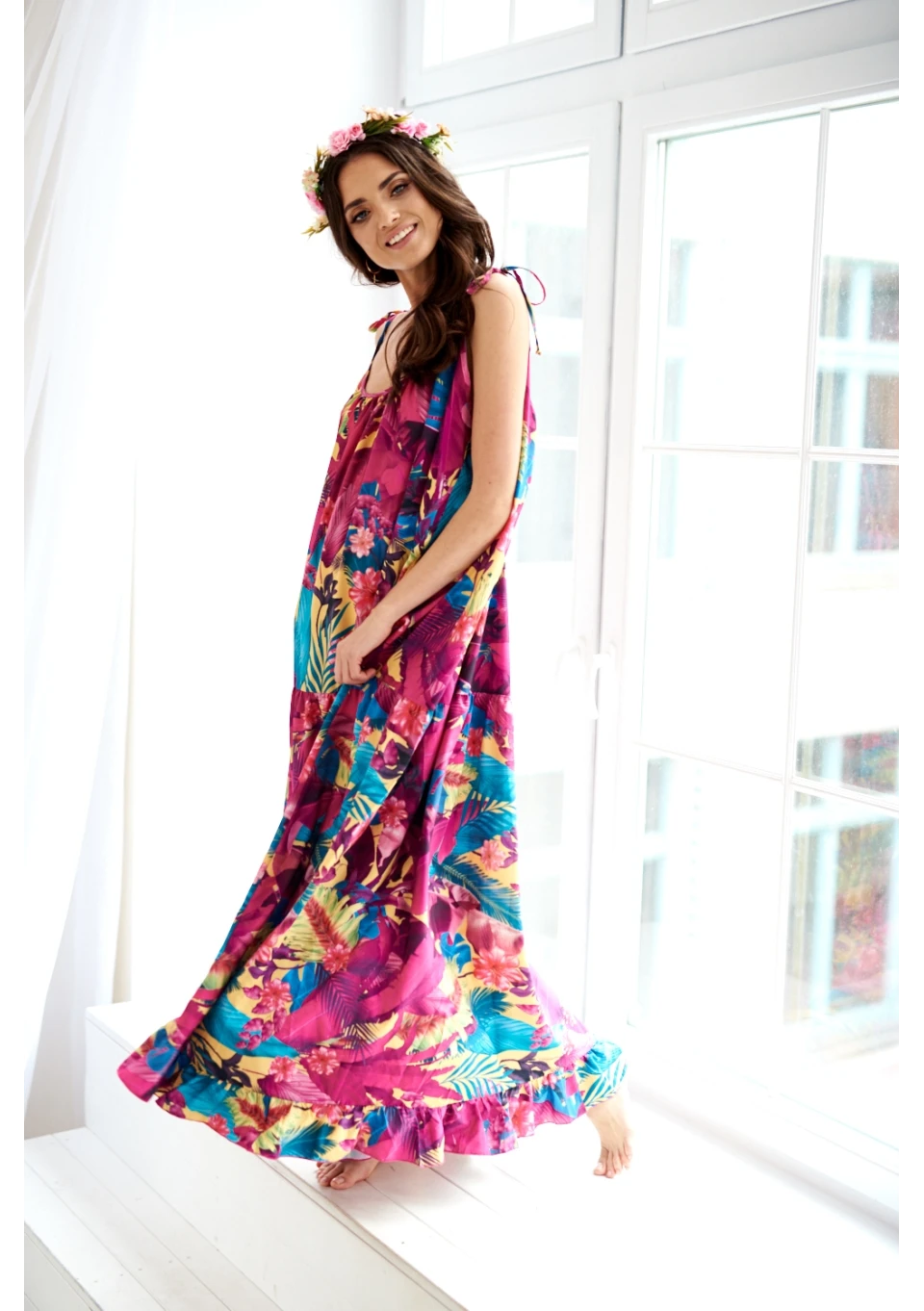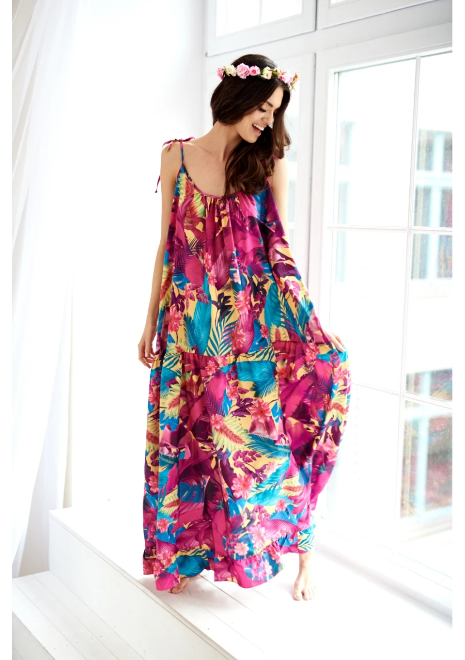 LOOSE MAXI DRESS IN JUNGLE COLORS PRINT