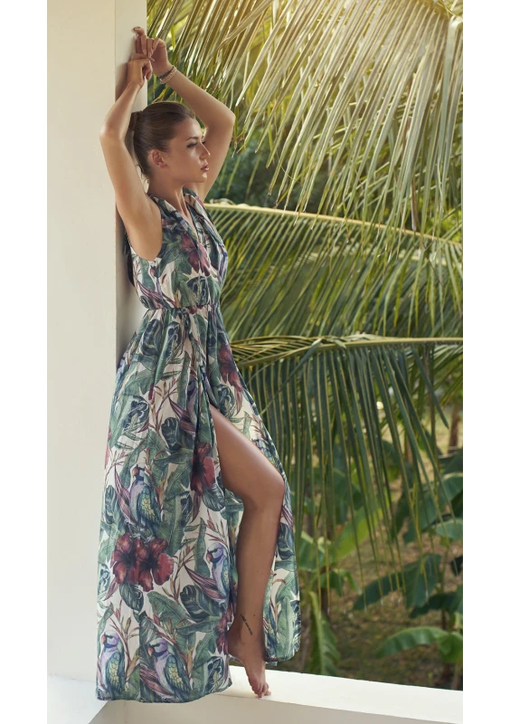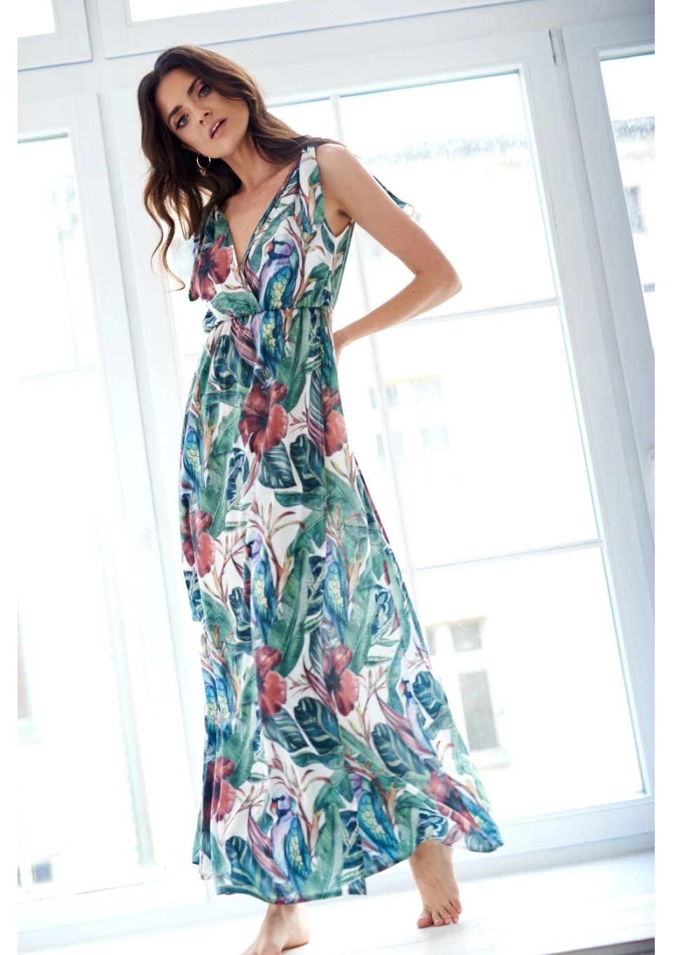 MAXI DRESS IN EXOTIC LEAVES PRINT