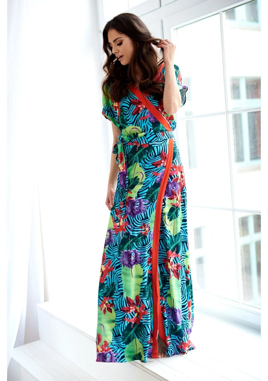 CROSSOVER MAXI DRESS IN JUNGLE COLORS PRINT