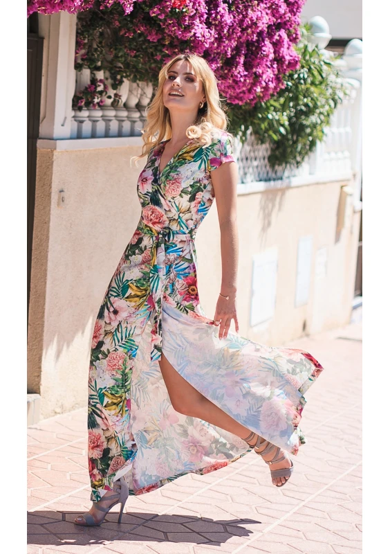 MAXI CROSSOVER DRESS IN FLOWERS PRINT