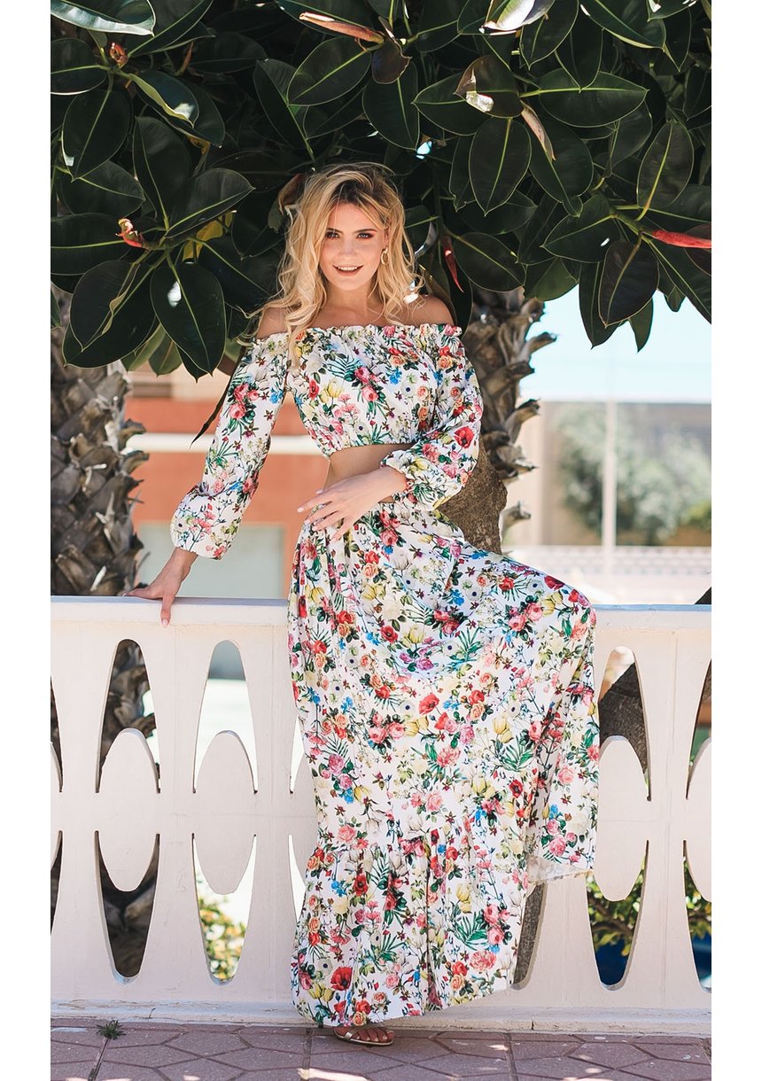 SUMMER FLOWERS PRINT MAXI SKIRT WITH TOP