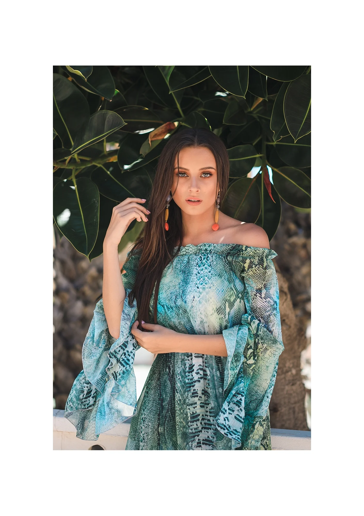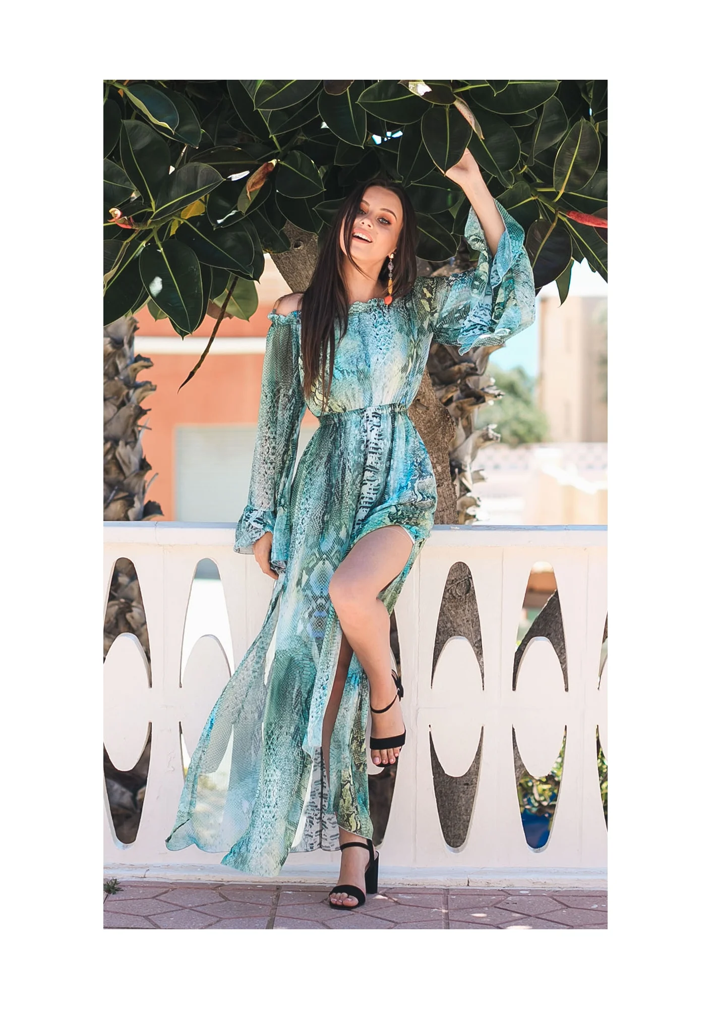 MAXI CHIFFON DRESS BLUE LAGOON PRINT