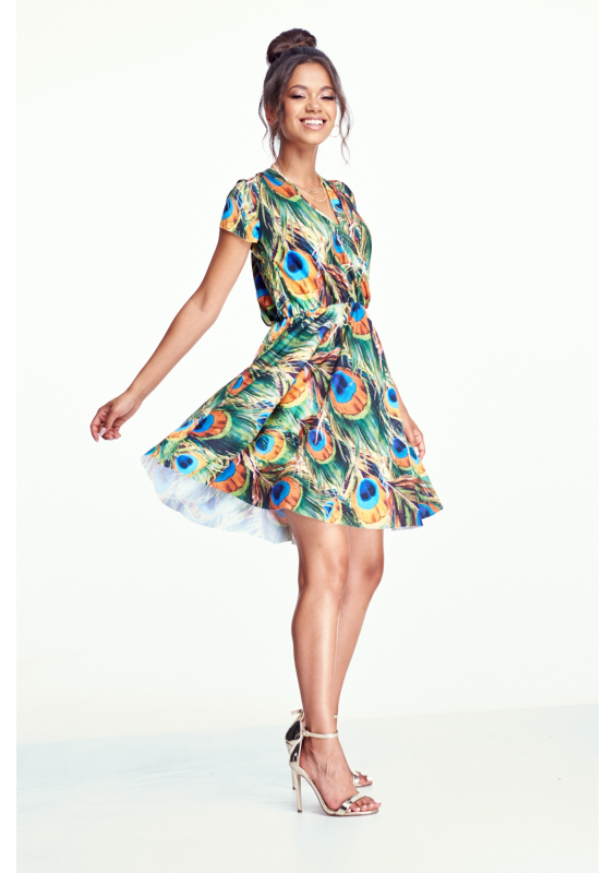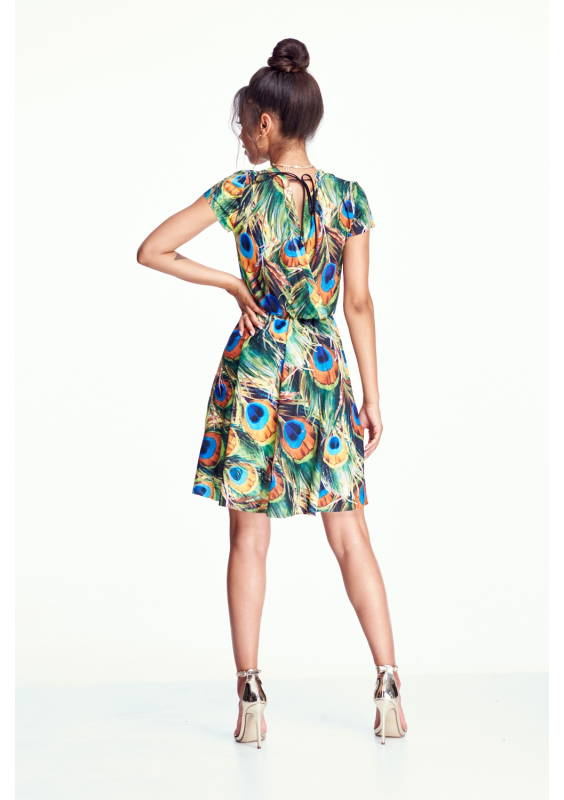 SKATER DRESS IN PEACOCK FEATHERS PRINT