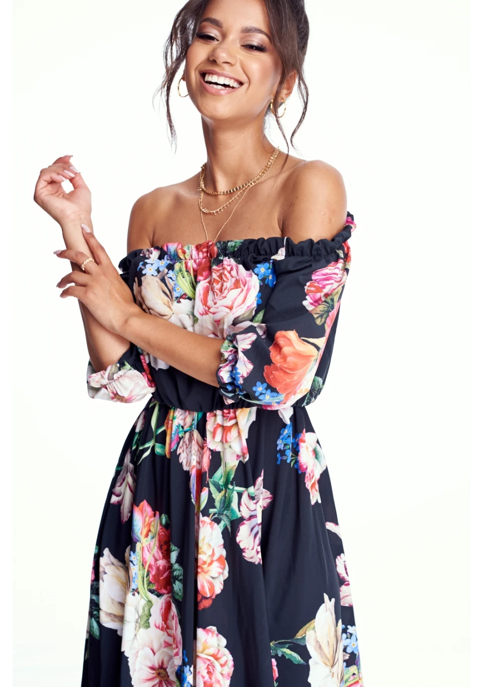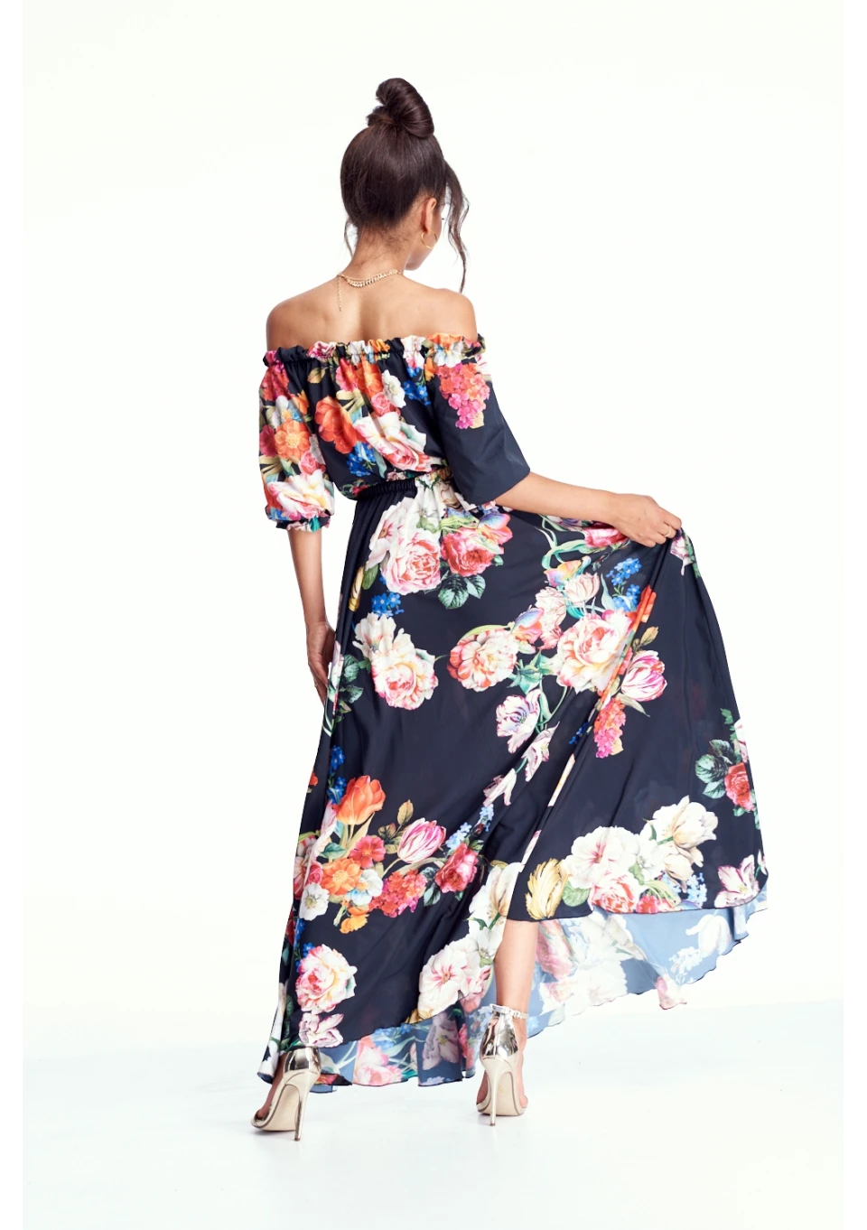 BLACK MAXI DRESS IN FLOWERS PRINT