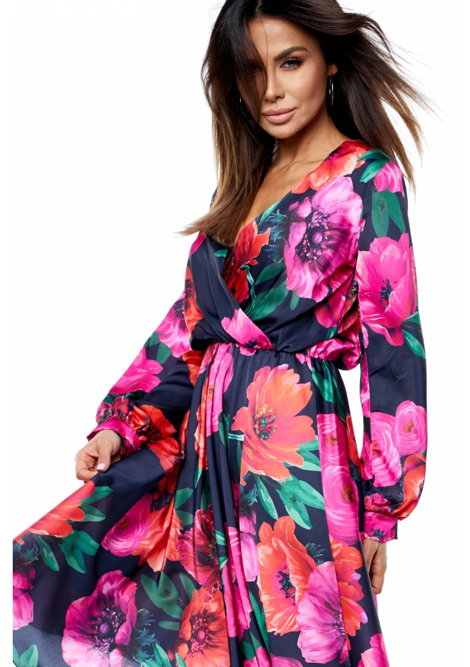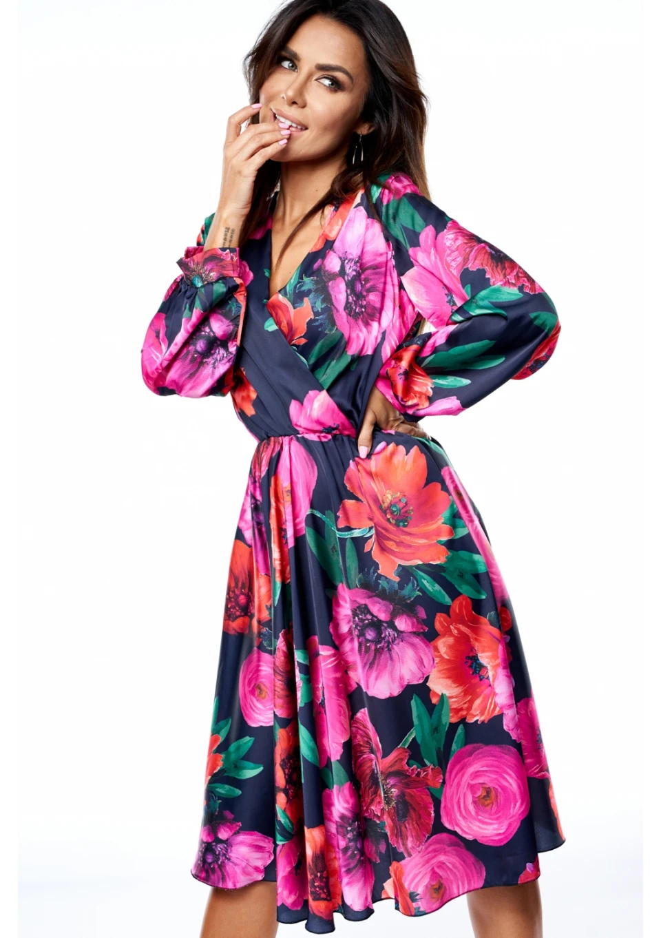 SATIN MIDI DRESS IN FLOWERS PRINT
