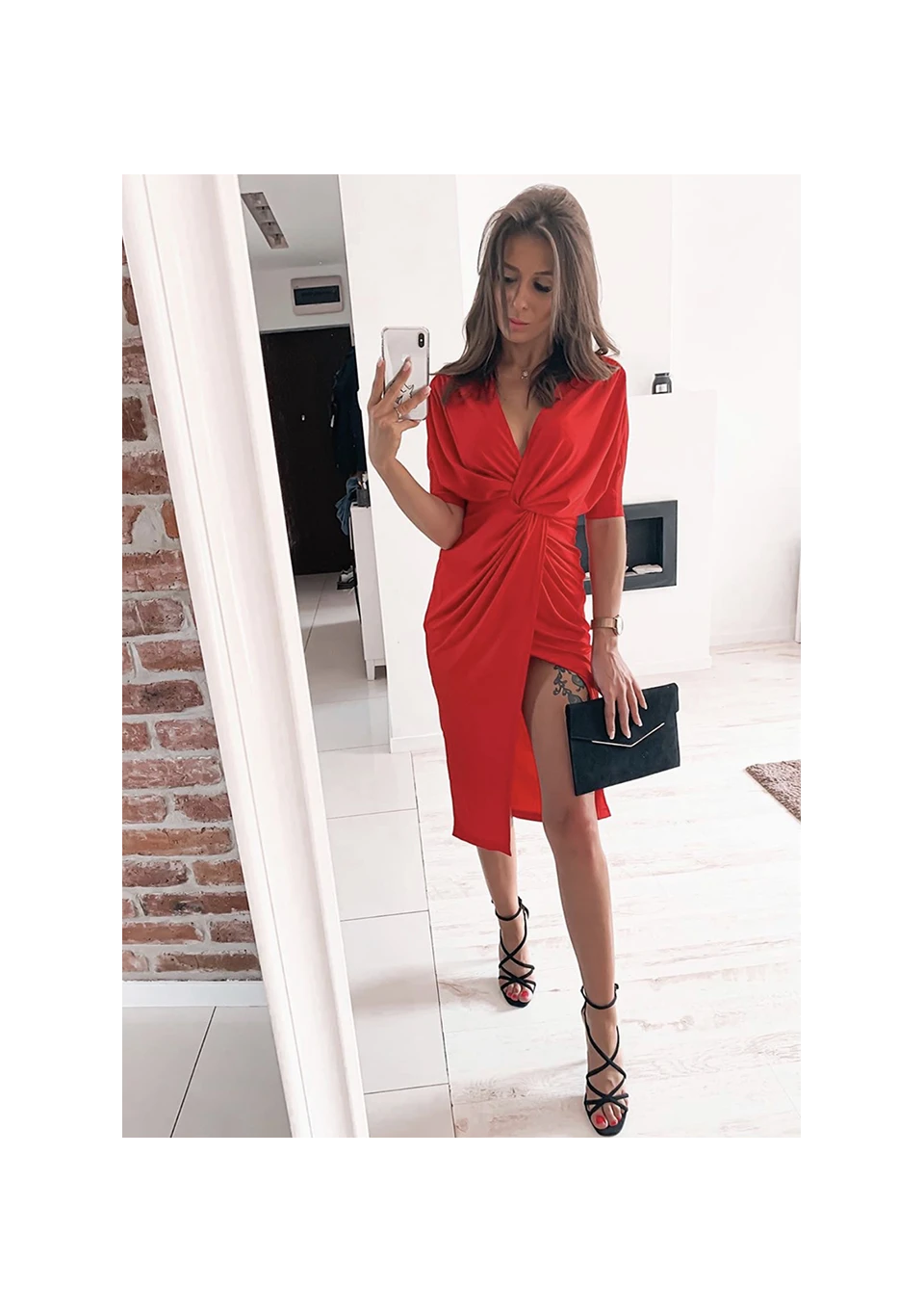 RED BODYCON DRESS WITH TIE FRONT