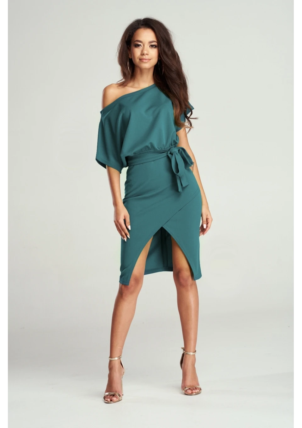 Sukienka MIDI z kimonową górą zielona