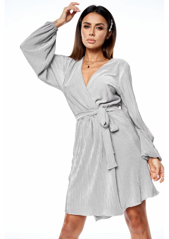 PLEATED CROSSOVER DRESS IN SILVER COLOR
