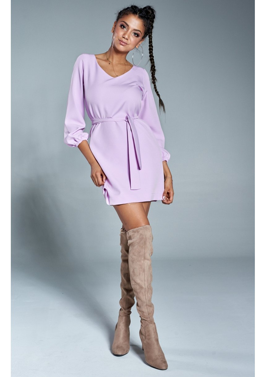 V-NECK VIOLET DRESS WITH BELT