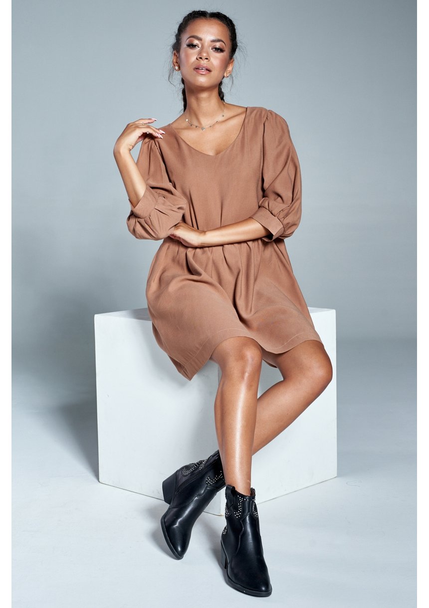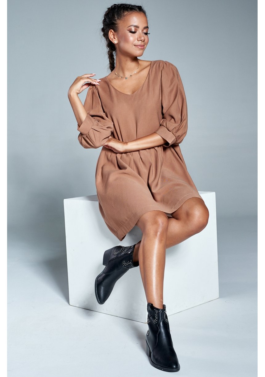 BEIGE OVERSIZED DRESS WITH BELL SLEEVES