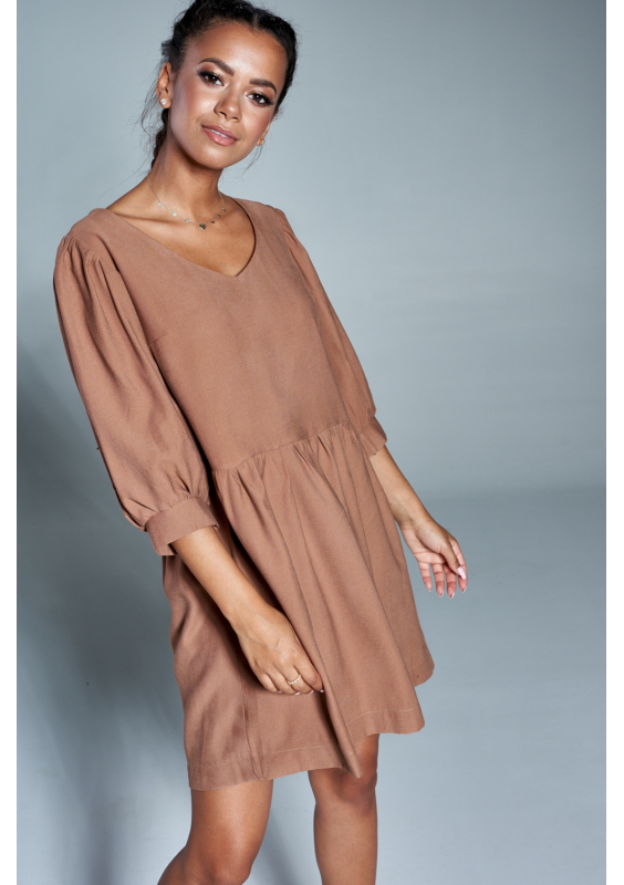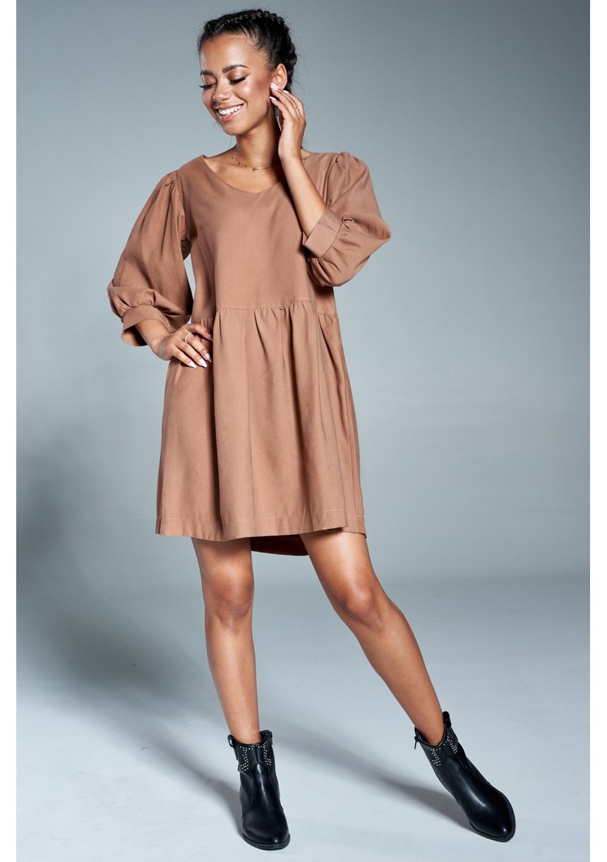 Lila - Latte beige mini flared dress